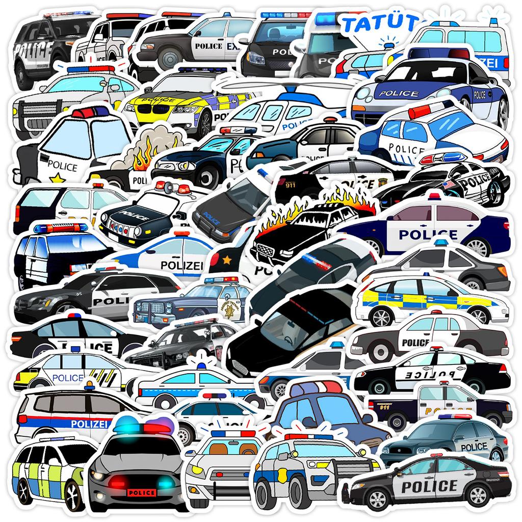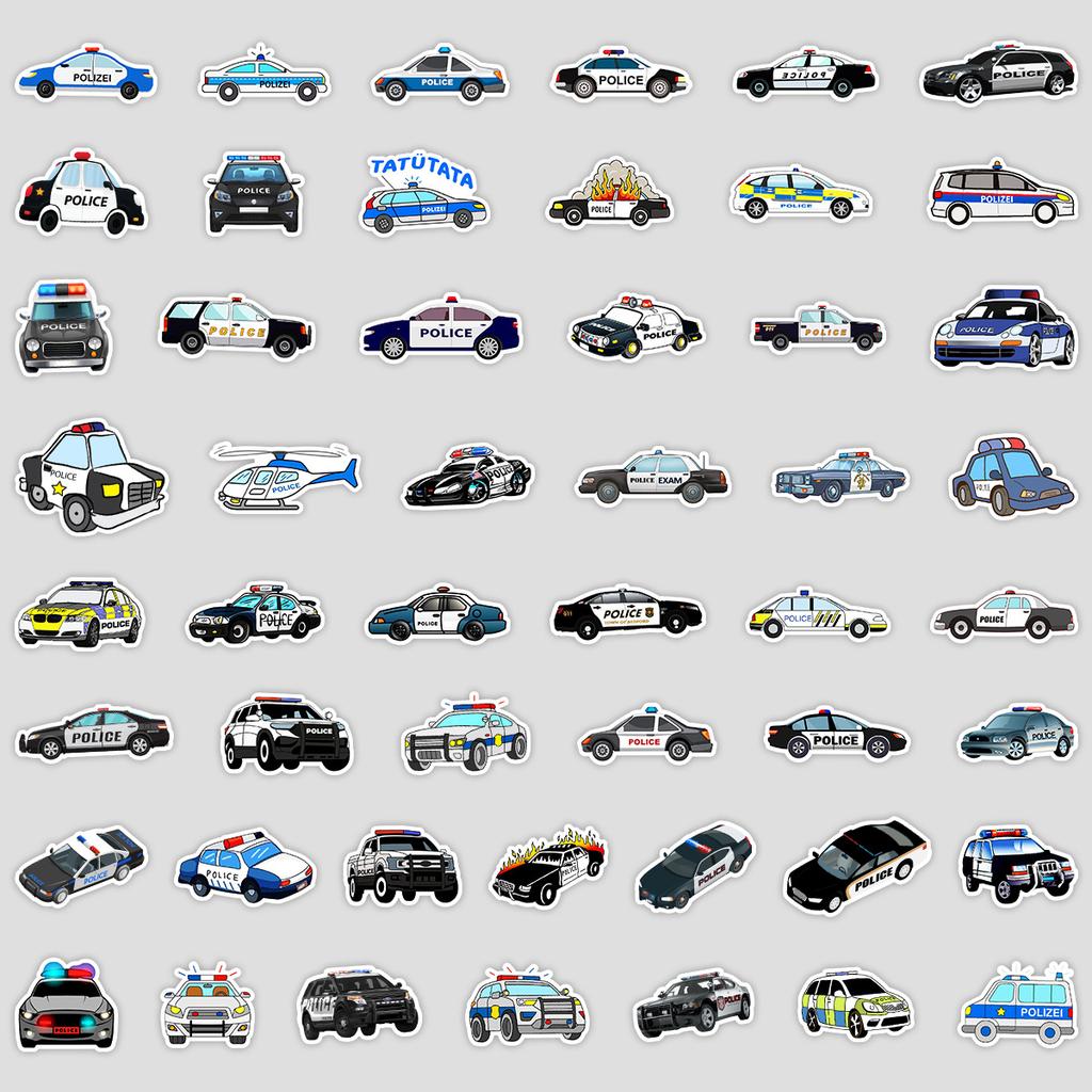 50 Мультяшных Наклеек Дудлов Полицейская Машина Чемодан Автомобиль Ноутбук Скейтборд Мобильный Телефон Водонепроницаемые Декоративные Наклейки