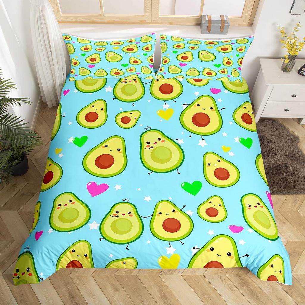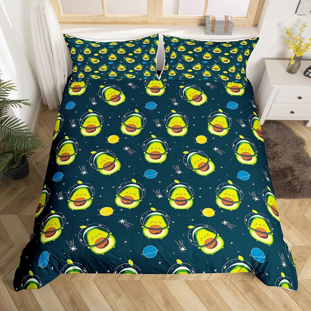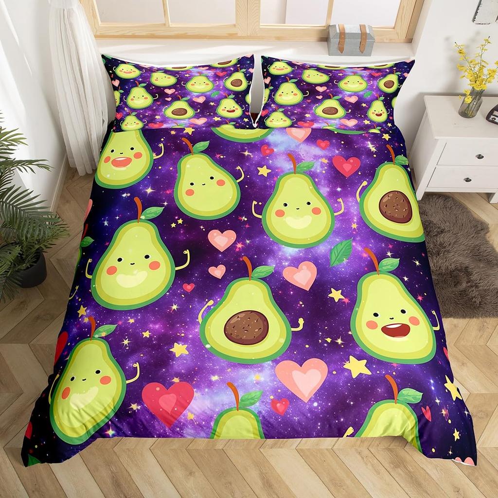 Avocado Bedding Set Full Queen Galaxy Comforter Cover for Kids Teen,Kawaii Fruit Duvet Cover Cartoon Tropical Food Bedroom Decor