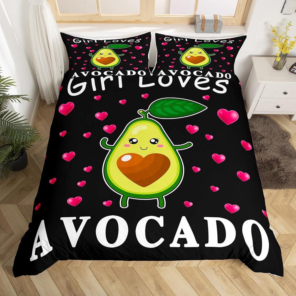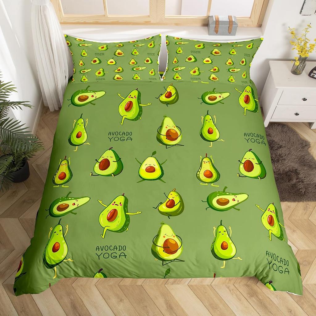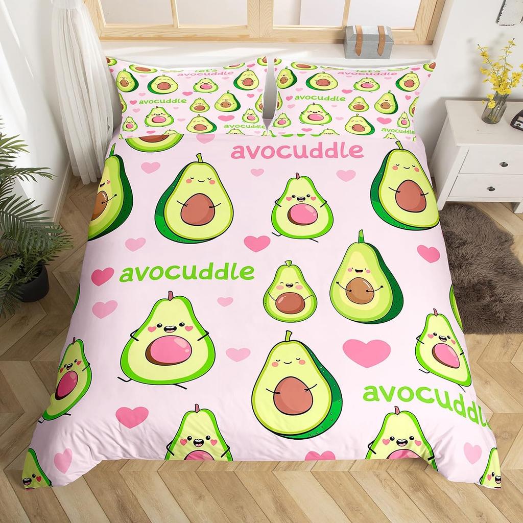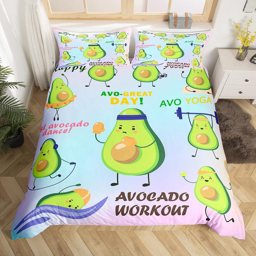 Avocado Bedding Set Full Queen Galaxy Comforter Cover for Kids Teen,Kawaii Fruit Duvet Cover Cartoon Tropical Food Bedroom Decor