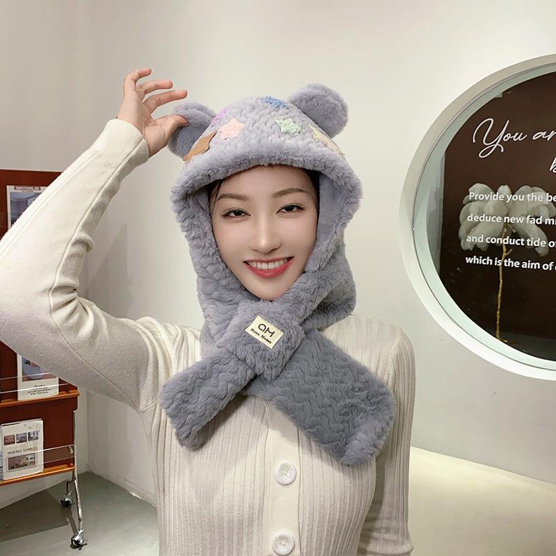 Милый медвежонок звездный ребенок шарф интегрированный осень и зима теплый и холодный велосипедный плюшевая шапка женщина