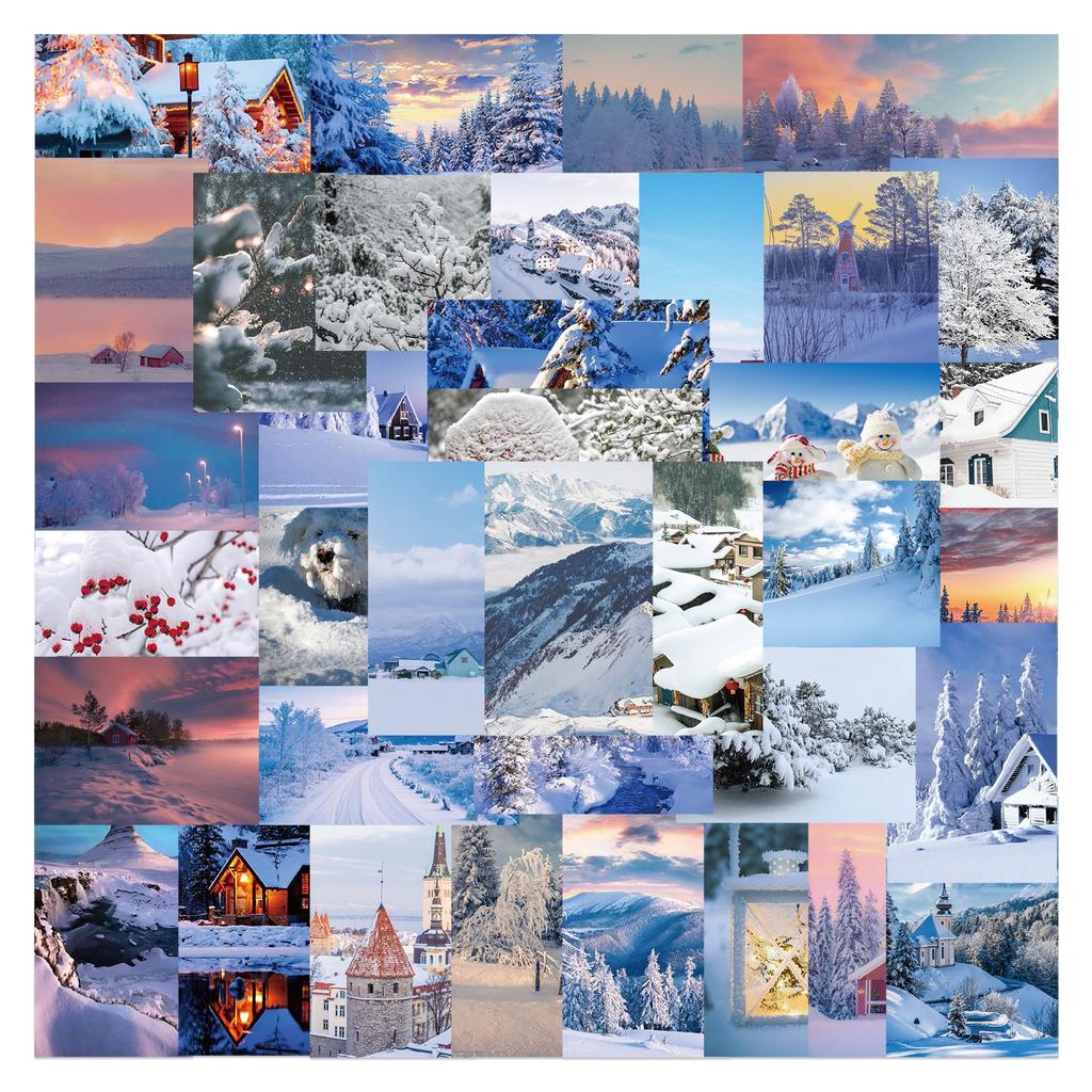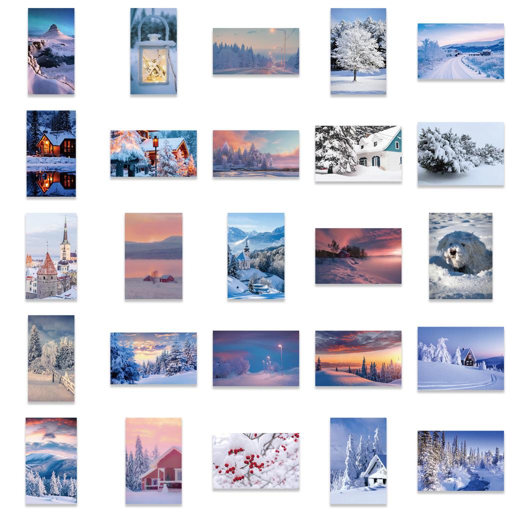 50 Зимних наклеек со снежными сценами Персонализированное украшение Чемодан Блокнот Гитара Водонепроницаемый Съемный клей Без повторяющихся наклеек