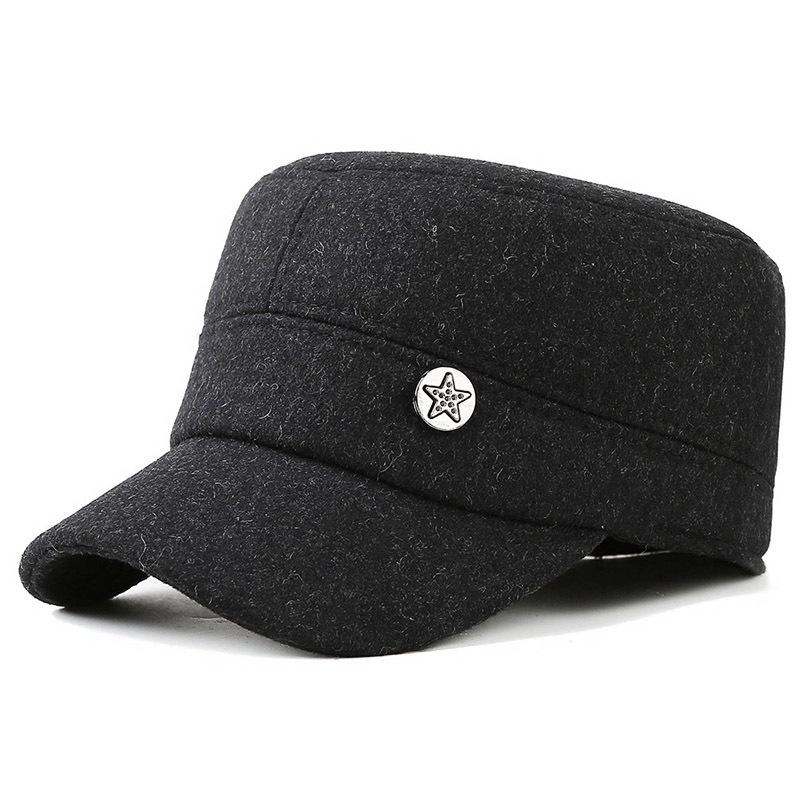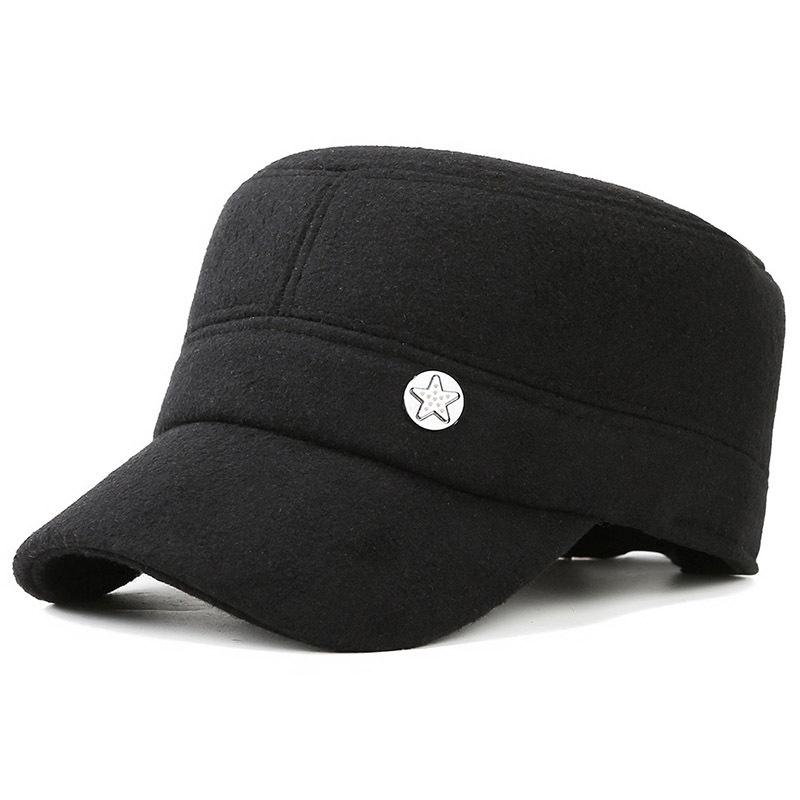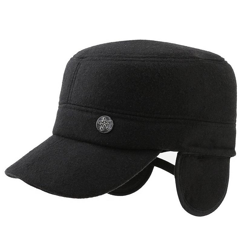 Шерстяной фетровый цилиндр с плоским верхом зимняя шапка для пожилого человека с утолщенной защитой ушей военная шапка пятизвездочная шляпа уличная кепка