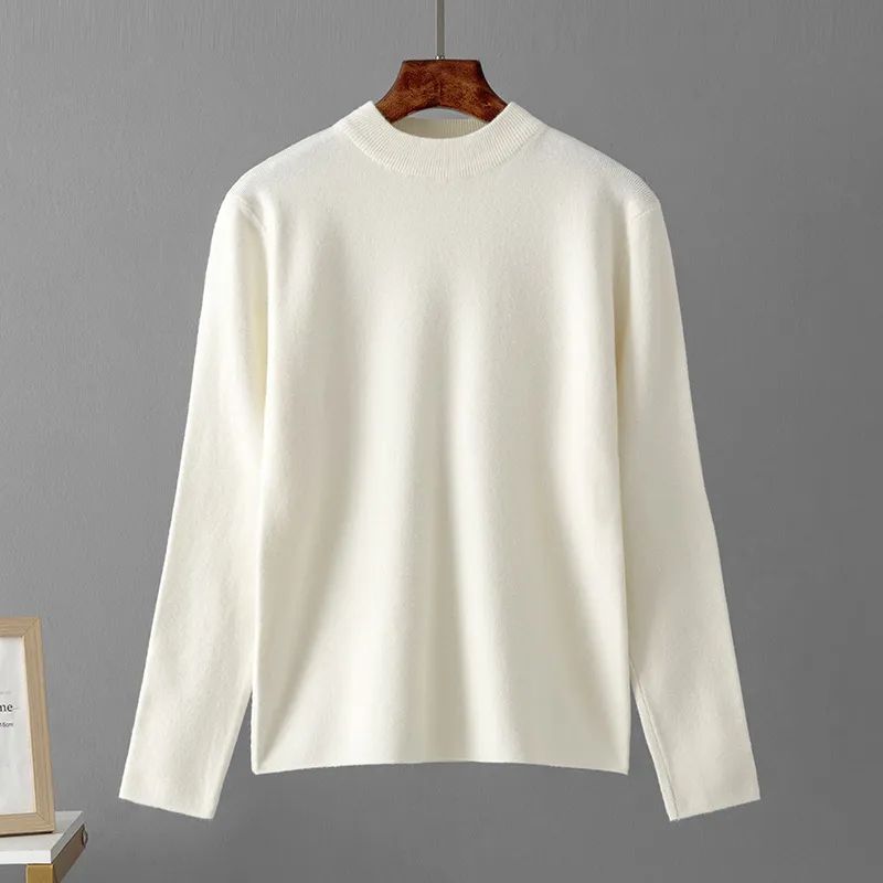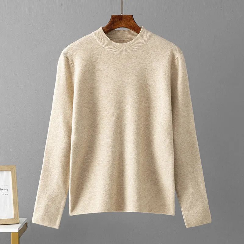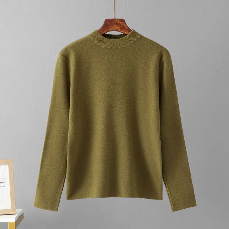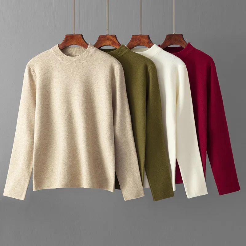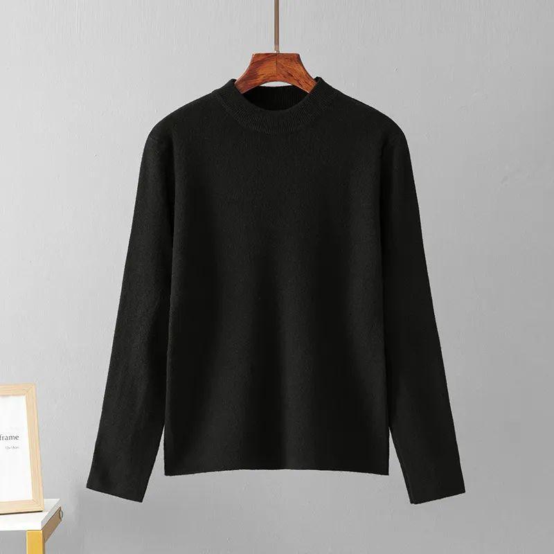 South Korea New Arrival Half Turtleneck Bottoming Shirt Autumn and Winter round Neck Solid Color Loose Long Sleeves Knitwear Inner Wear Sweater Women