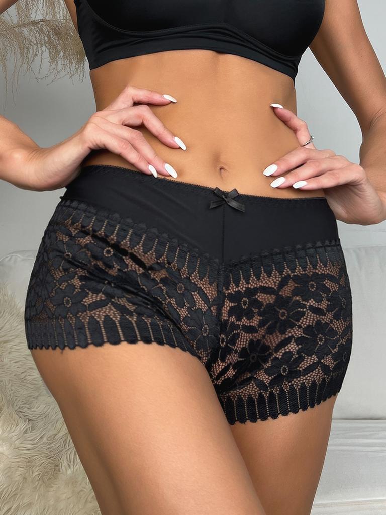 Кружевные трусики, женские трусики миди с бантиком, сексуальное прозрачное белье, соблазнительное комфортное женское белье с вырезами
