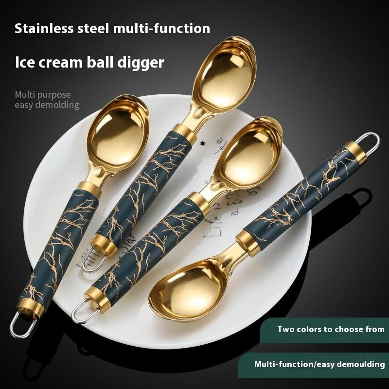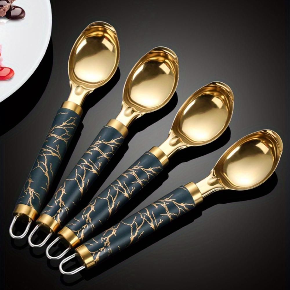 Набор из 4 предметов из нержавеющей стали и титана, утолщенная десертная многофункциональная ложка для мороженого, подходит для арбуза, фруктов