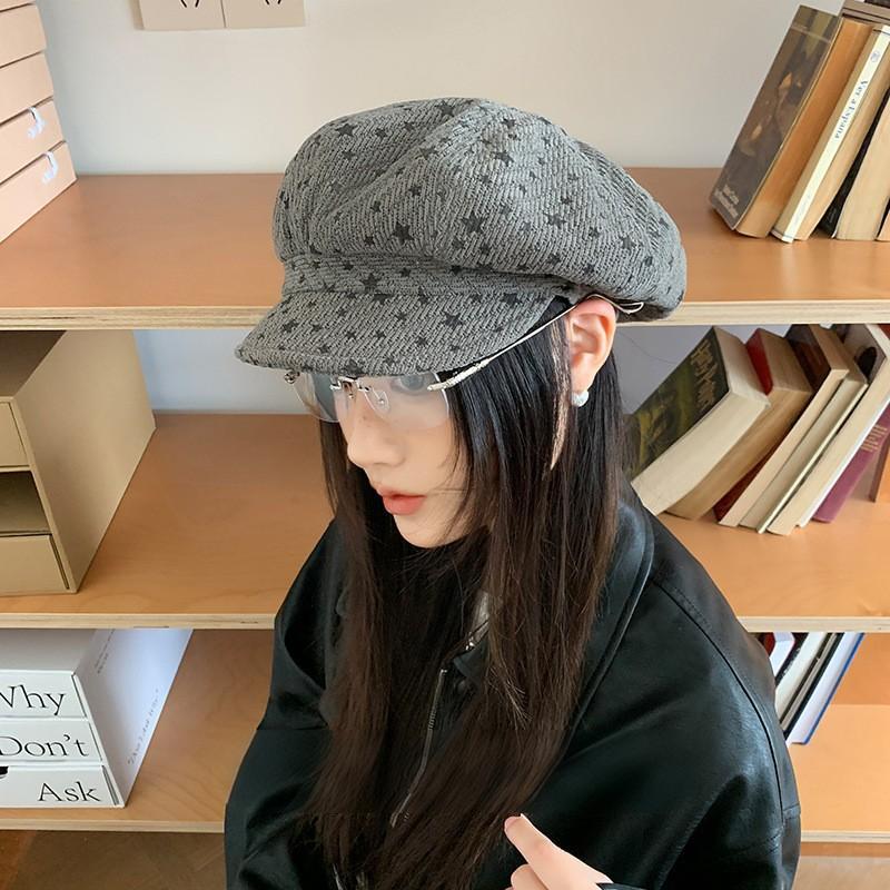 25 Ранняя осень новая шерстяная шляпа газетчика с широкими полями и пятиконечной звездой, большой окружности головы, подчеркивающая лицо, маленькая шляпа художника