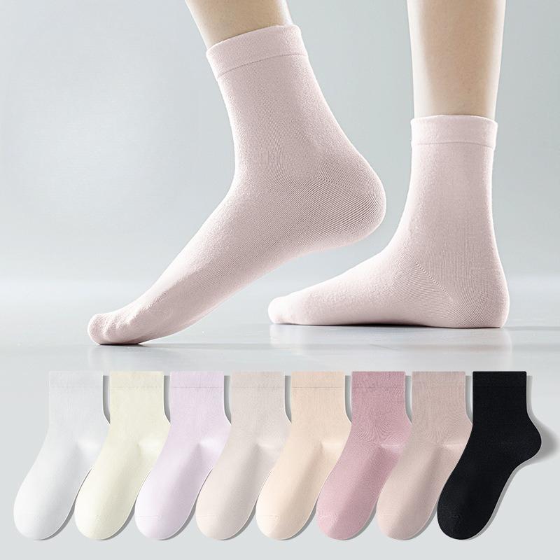 Женские весенне-осенние носки до середины икры, дезодорирующие и влагопоглощающие носки из чистого хлопка, бесшовные носки, однотонные и универсальные носки
