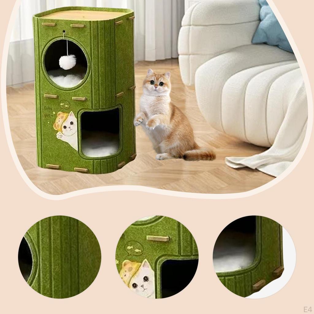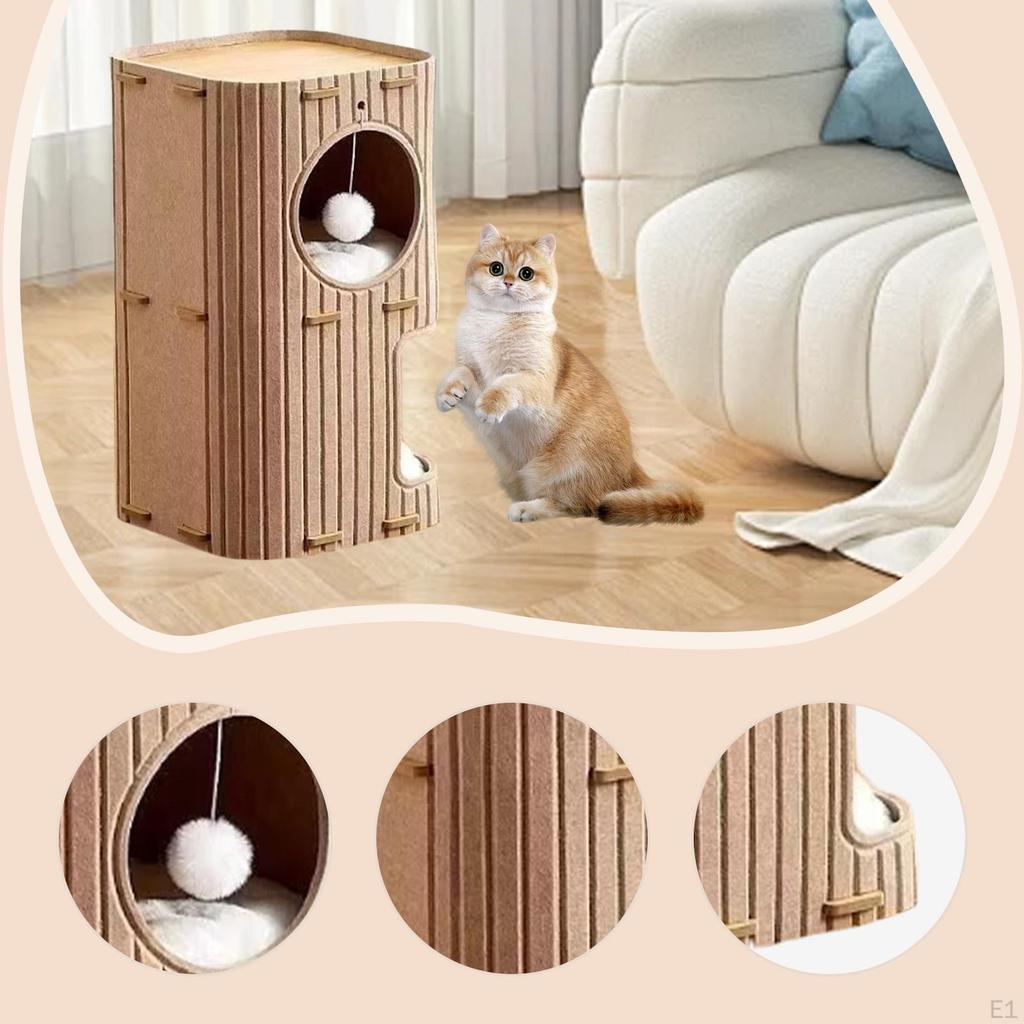 - 【МНОГОФУНКЦИОНАЛЬНЫЙ КОШАЧИЙ РАЙ】: Эта двухуровневая кошачья пещера сочетает в себе уютное убежище для сна, место для наблюдения и прочную фетровую поверхность, удовлетворяющую их инстинкты царапания, и все это в стильном блоке.