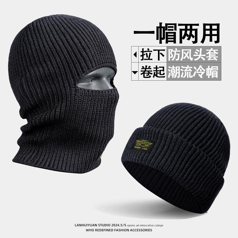 Шапка Мужская Зимняя Защита Лица Капюшон Ветрозащитная Теплая Маска Защита Ушей Вязаная Шерстяная Холодная Шапка Женская