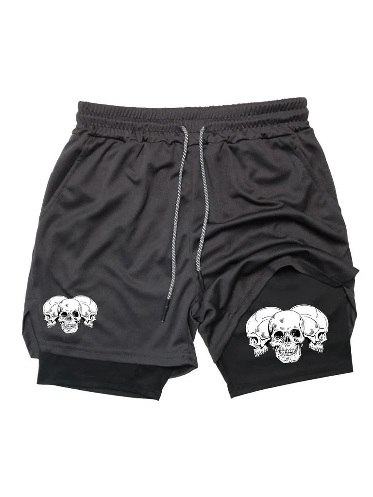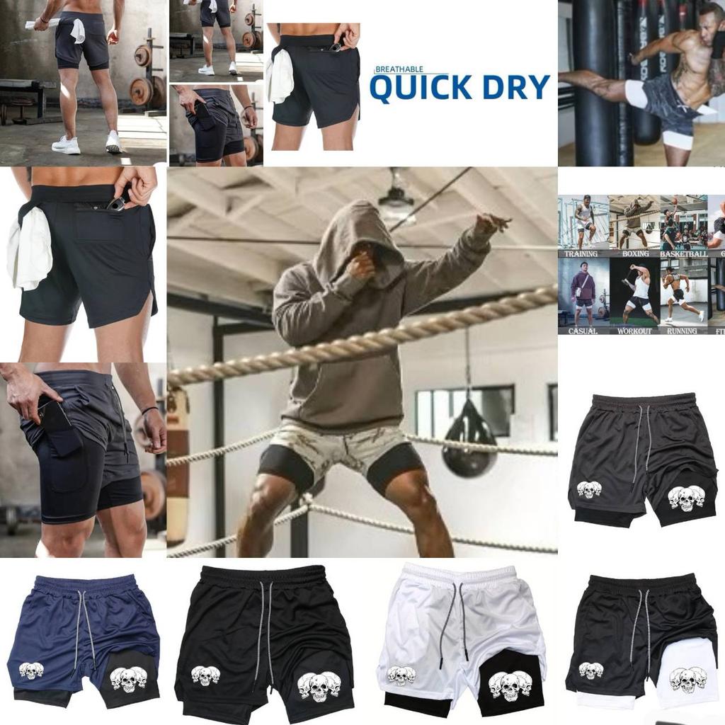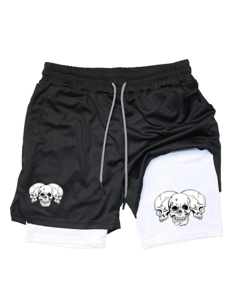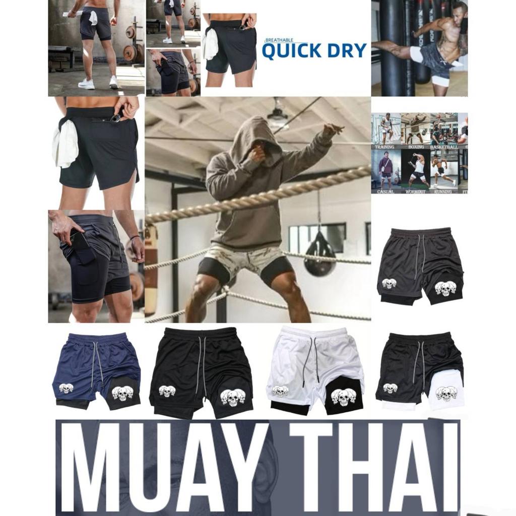 Muay Thai Kick Boxing MMA Shorts Triple Three Skull Men Women Unisex Double Layer Quick Dry Breathable Training Sport Gym Fitness Workout