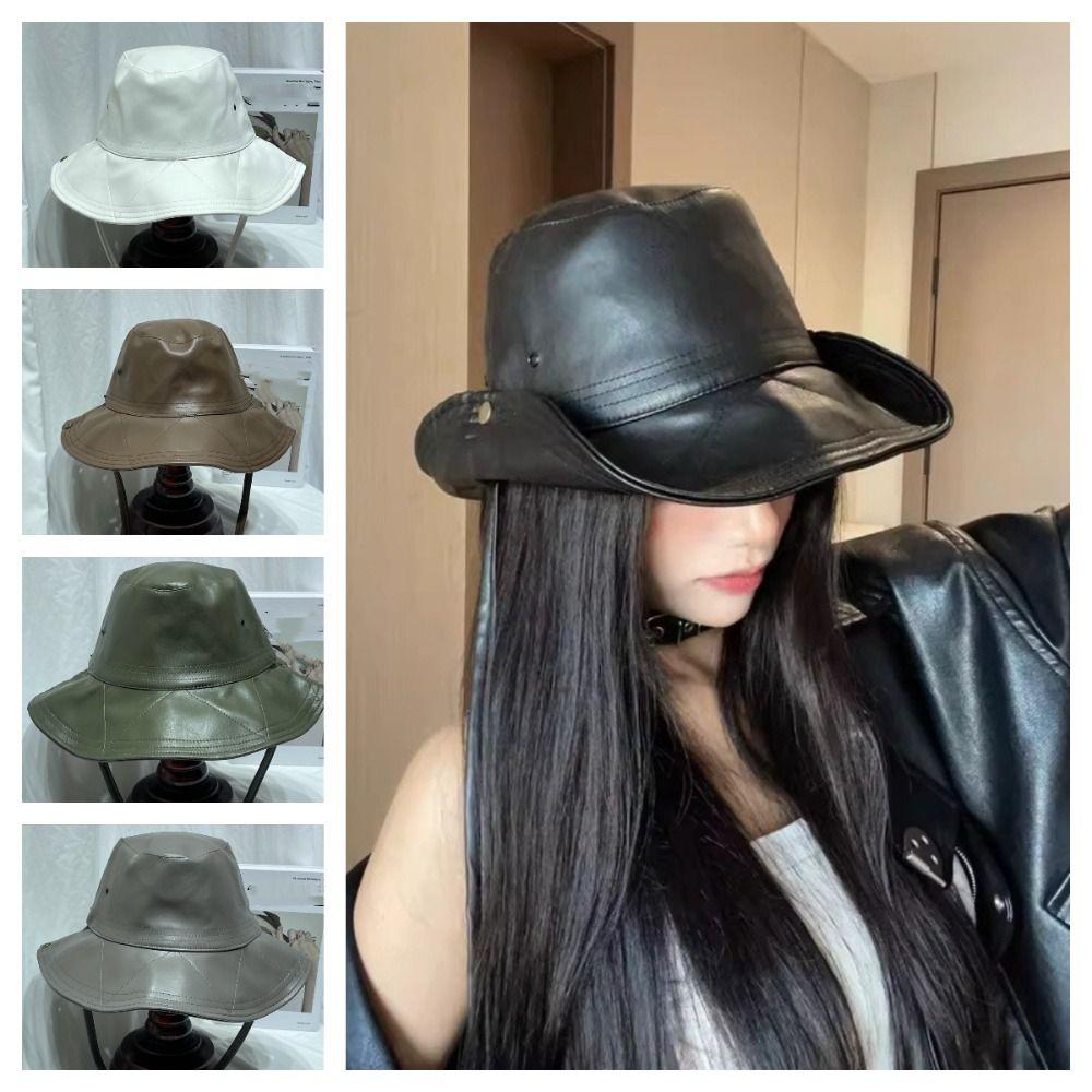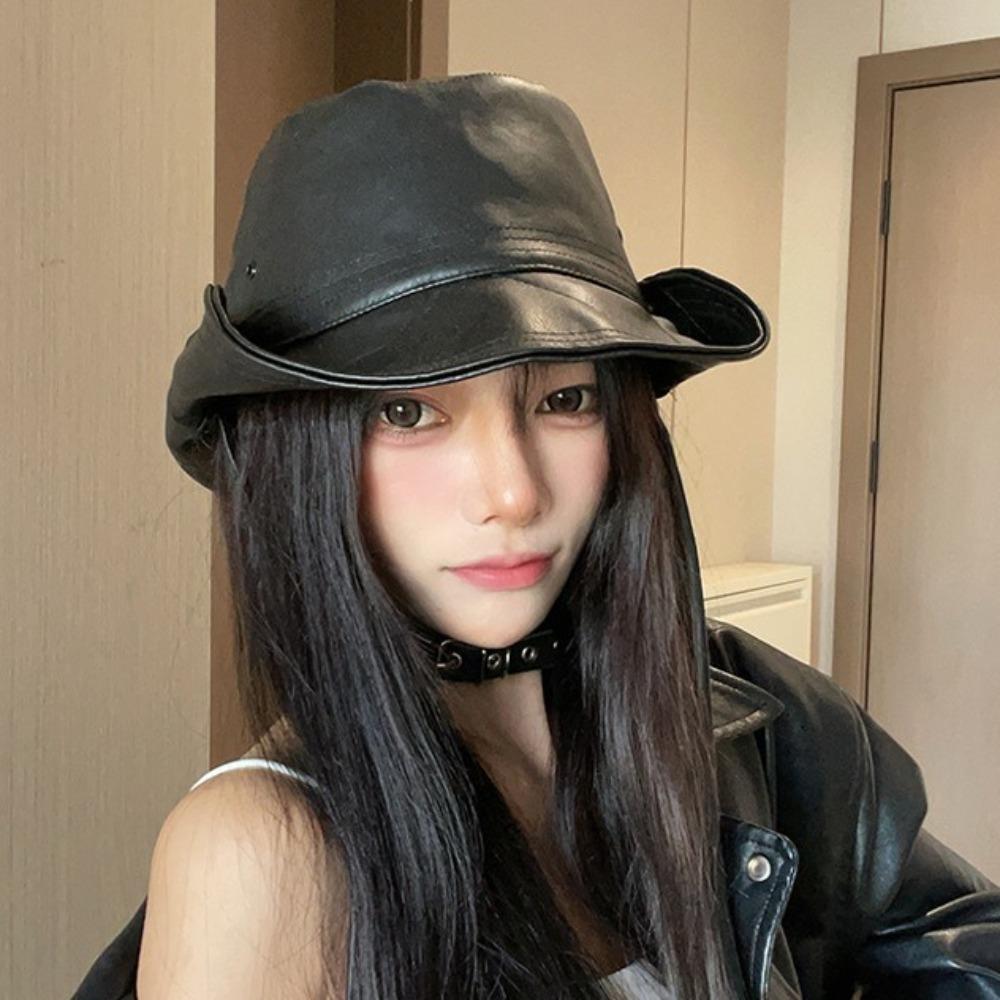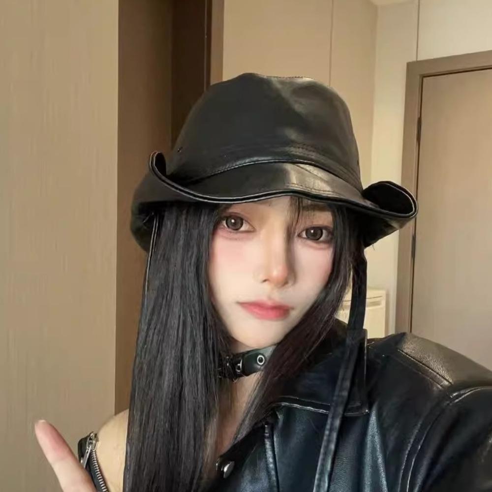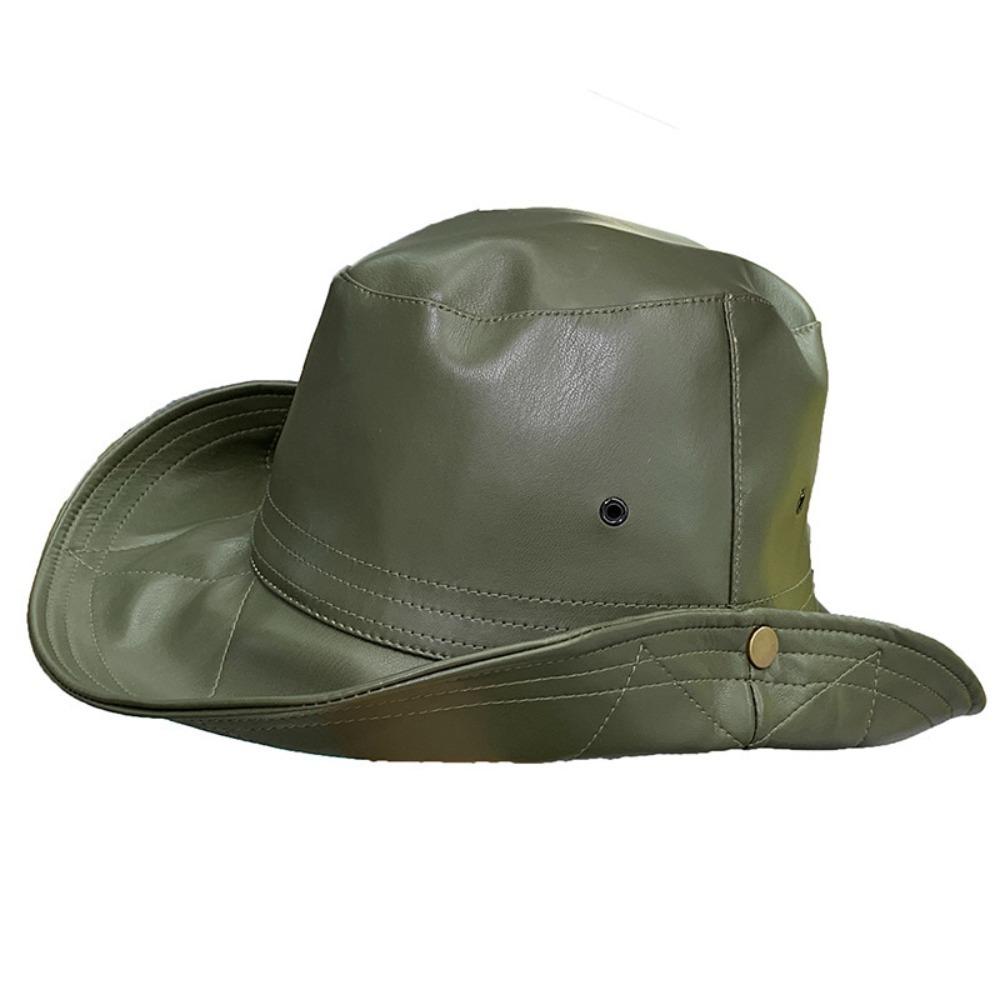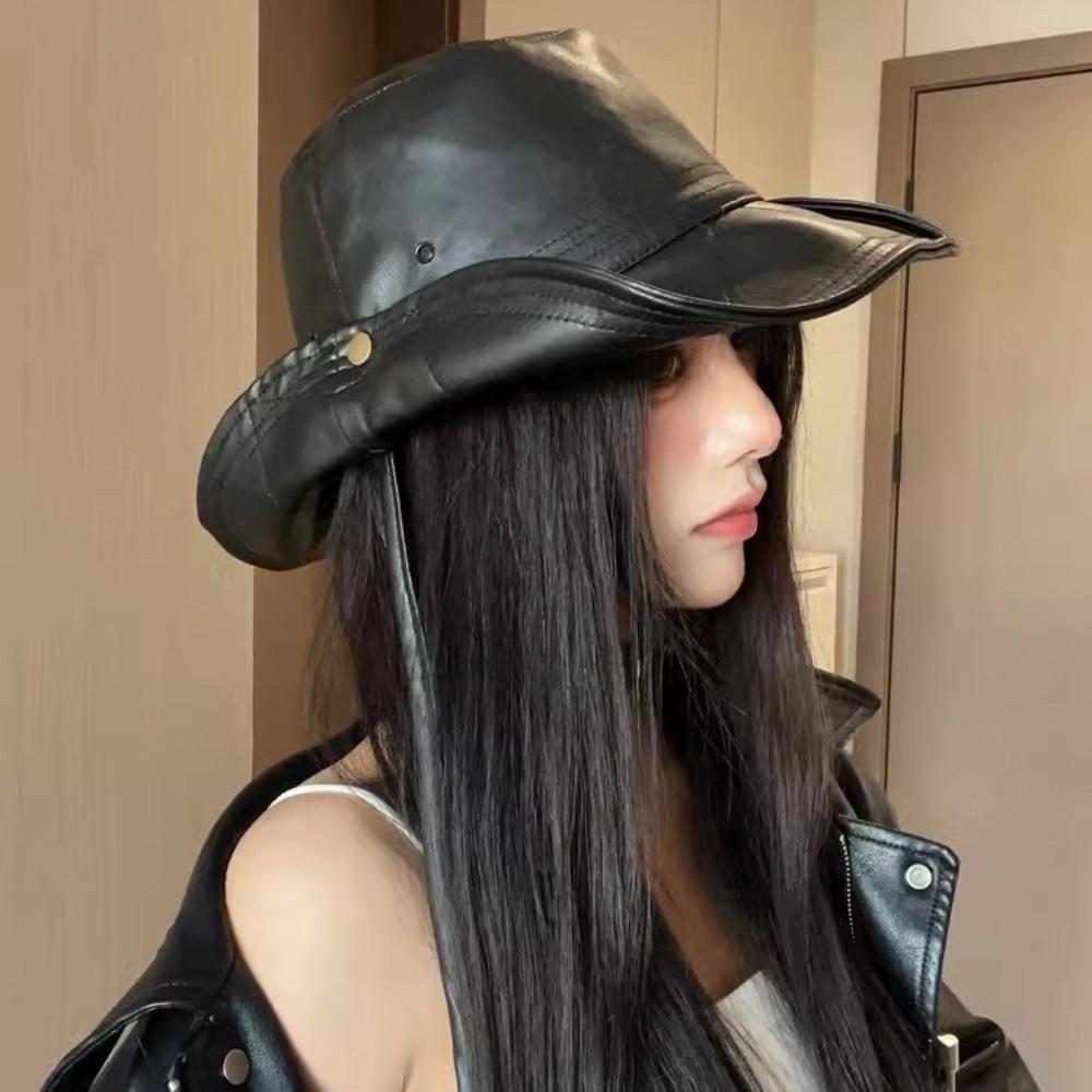 Big Brimmed Western Cowboy Cap PU Leather Sun Protection Hat Casual Fisherman Hat Travel