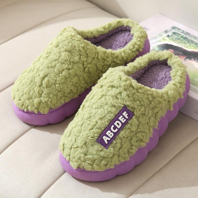 Осень и зима милые хлопковые тапочки женские домашние комнатные толстоподошвенные нескользящие с закрытым носком бархатные теплые туфли для послеродового периода