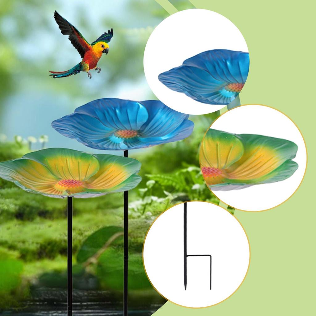 Bird Bath Bowl Outdoor Bird Feeder Sturdy Decorative Pattern with Stake for Yard Backyard Lawn Garden Decoration