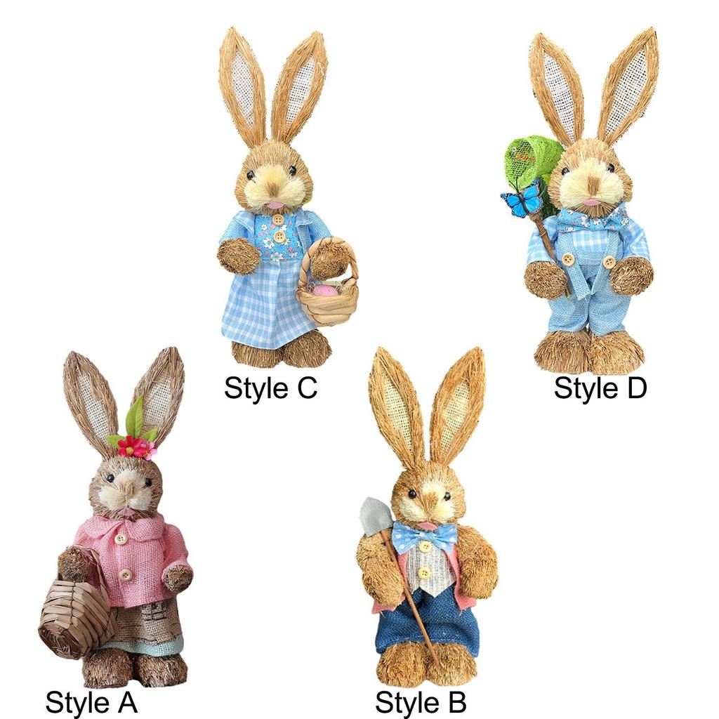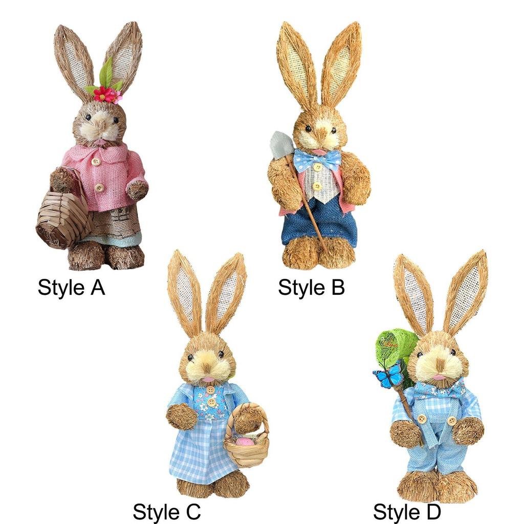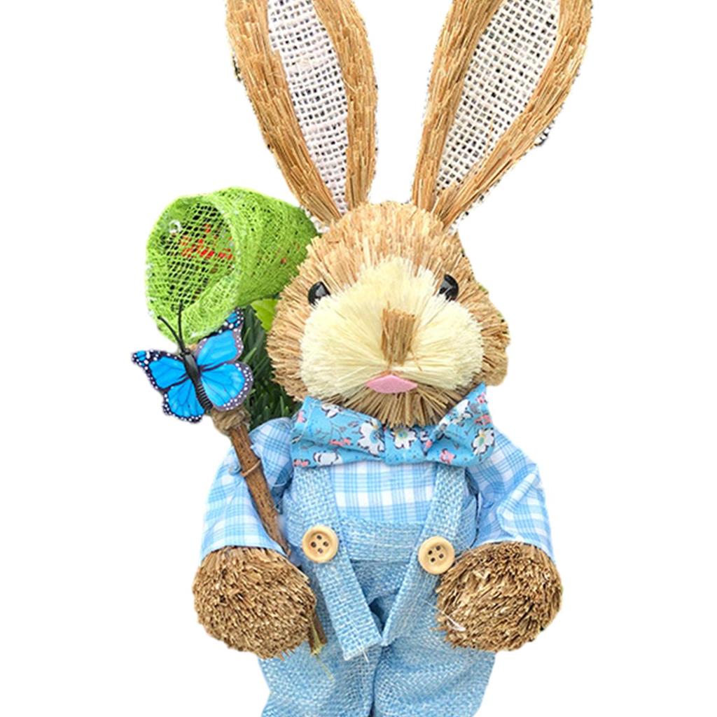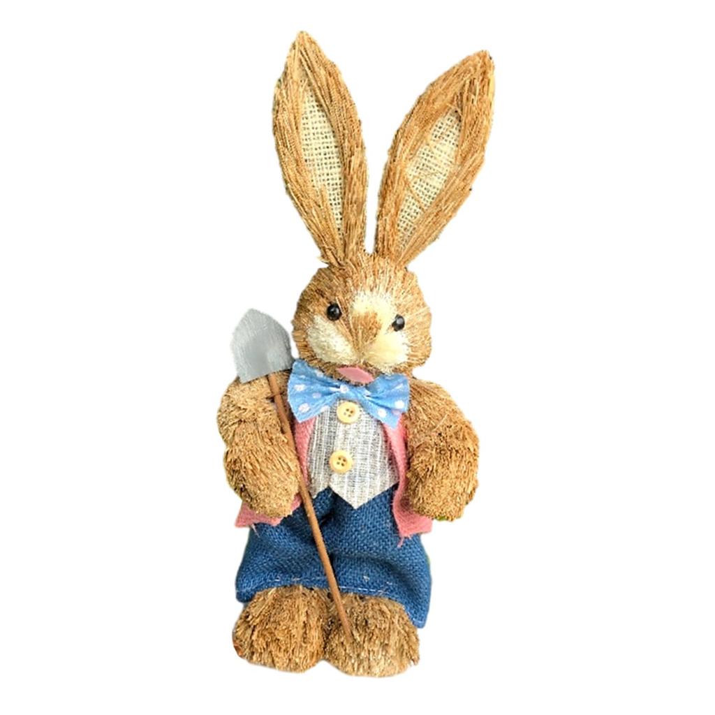 Easter Bunny Figurine Creative Straw Statue for Bedroom Shelf Balcony