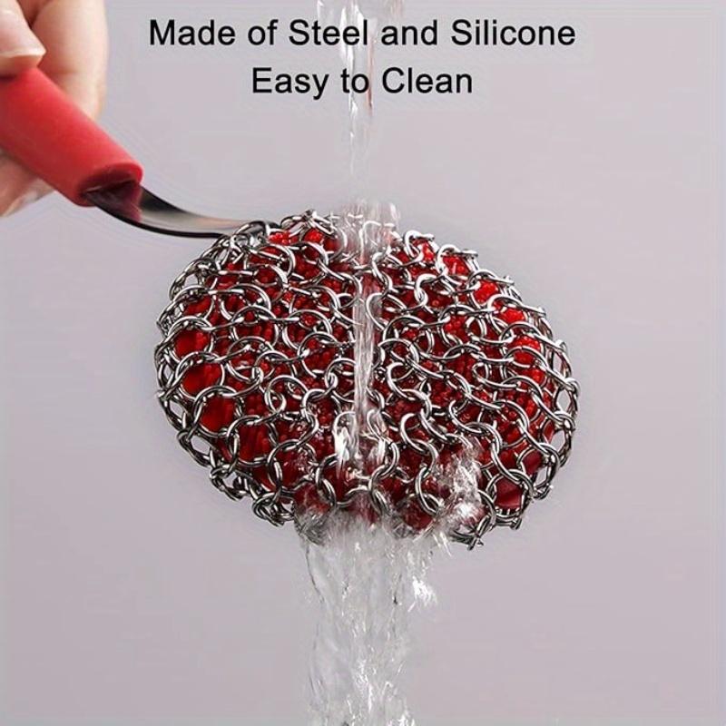 Сетка для гриля 3 в 1 с ручкой, Сверхпрочная сетка из нержавеющей стали без щетины, Пароочиститель, Двойная функция