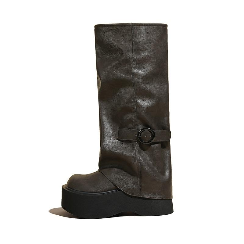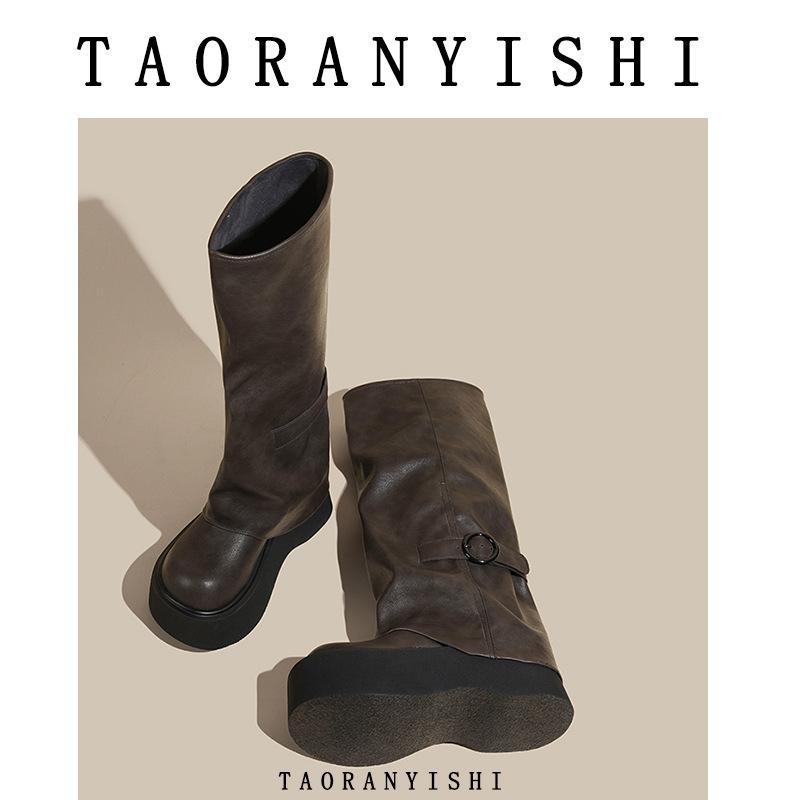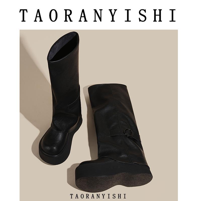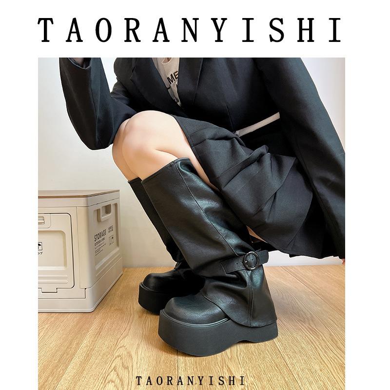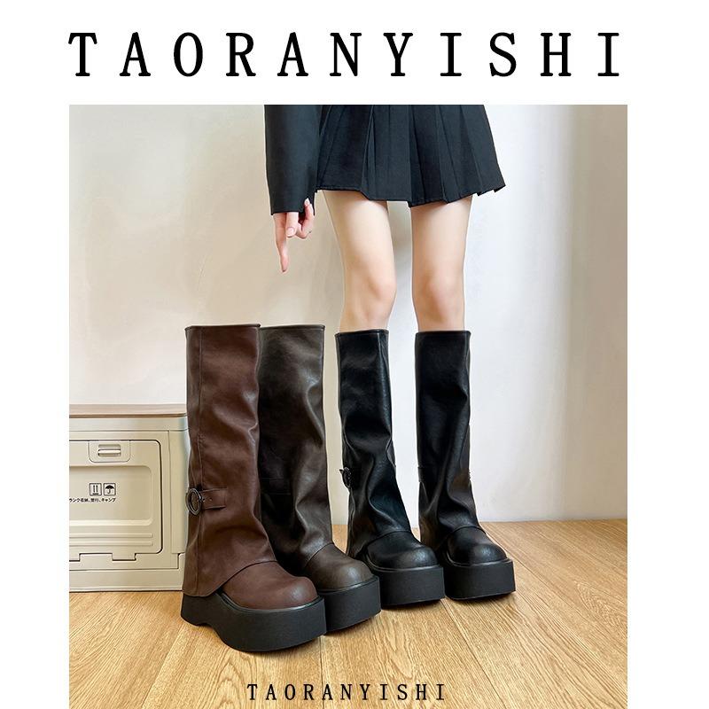 Брюки-сапоги, новинка осени и зимы, но сапоги до колена, нишевый дизайн на толстой подошве, тонкие рыцарские сапоги, маленький размер.