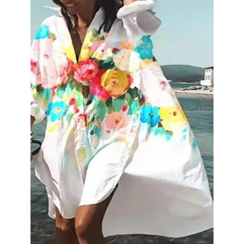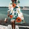 Свободное платье с V-образным вырезом и принтом, со свободными лацканами — купить товар онлайн с бесплатной доставкой до всему миру!
