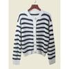 Sunshine House Spring New Arrival Export Fashion LL Home Cotton Striped Long Sleeved Women's Sweater Coat Sweater Cardigan