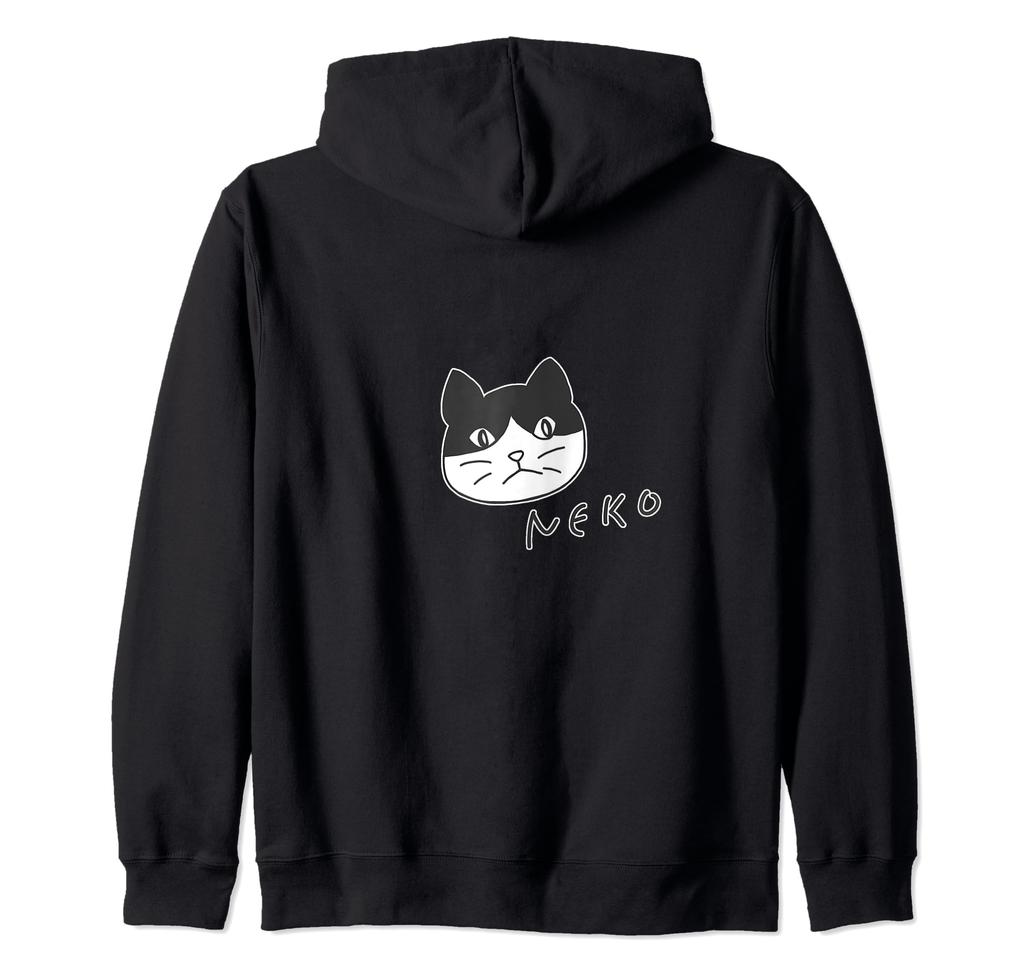 Cat black and white Grumpy cat simple pencil drawing style hoodie - neko, [Animal Friends] face, illustration, zip-up
