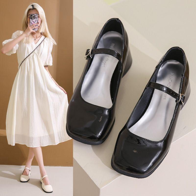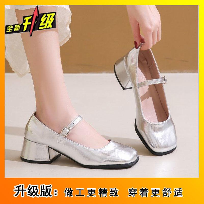 Новые летние туфли-лодочки на толстом каблуке, серебристые, Мэри Джейн, женские, с юбкой, темпераментные, одинарные туфли, маленькие кожаные туфли