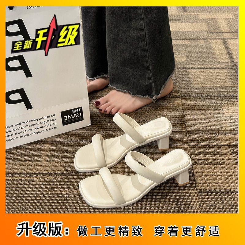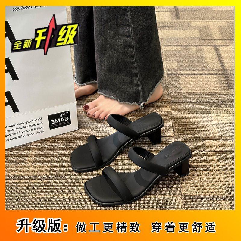Высококлассная верхняя одежда крутые тапочки с сандалиями женские осенние новые толстые каблуки простые с открытым носком высокие каблуки