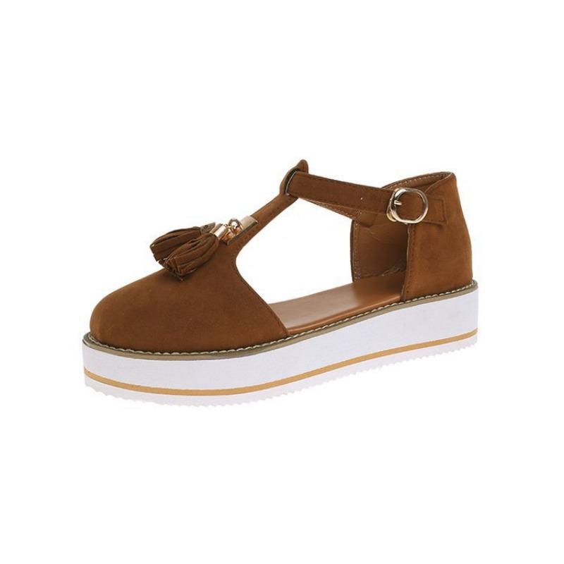 New sandals women's large size summer flat bottom student versatile bag head thick sole one-word buckle retro