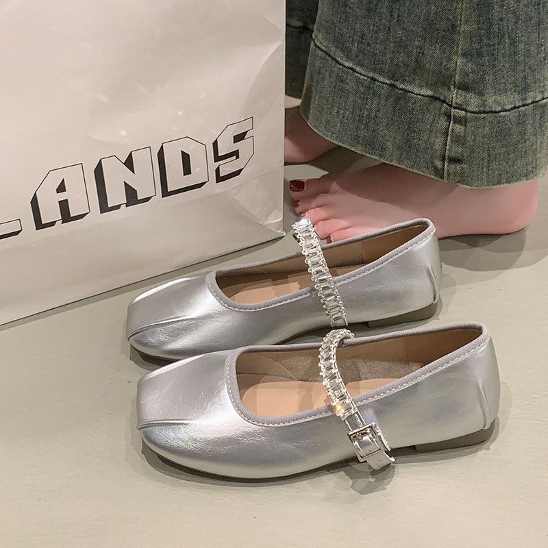Одно слово со стразами на плоской подошве туфли Мэри Джейн женские новые квадратный носок мелкий вырез мягкая подошва одинарные туфли