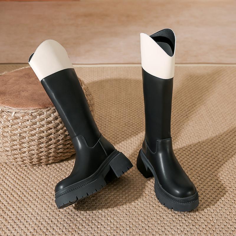 Сапоги женские зимние новые на толстой подошве, цветные, детские сапоги-рыцари, детские универсальные, но до колена, кожаные сапоги женские