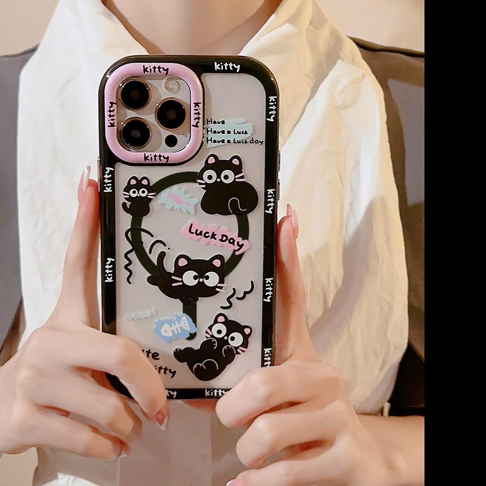 Игривые кошки Подходит для чехла для мобильного телефона 14ProMax Apple 13 Граффити Милый браслет Iphone16 Жесткий 15 Магнитная присоска