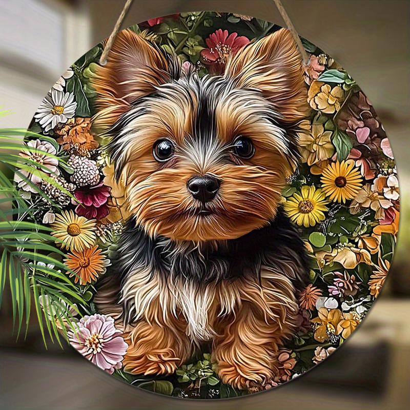 Плоские подвесные декоративные таблички 2D, украшение для интерьерной стены или двери, садовый декор, рисунок - собака и цветы маргаритки, подарок на новоселье для друзей