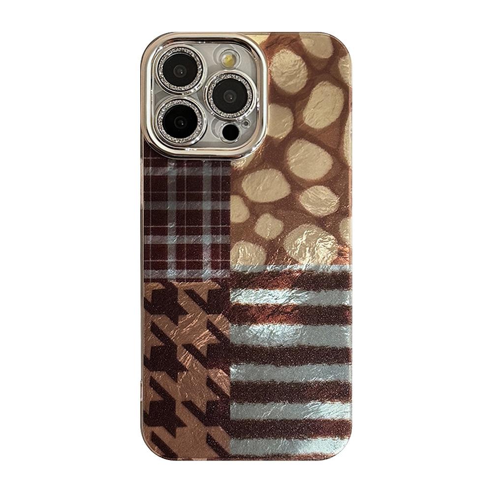Американский Ретро Леопардовый Принт Сращивание Чехол для Мобильного Телефона Подходит для 16 Apple 17 Promax Защитная Пленка для Объектива Iphone14 Блестящая Пудра 12