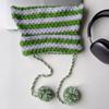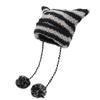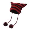 Шерстяная вязаная полосатая шапка-бини с милыми кошачьими ушками, остроконечная шапка-пуловер, вязаные шерстяные шапки, женская