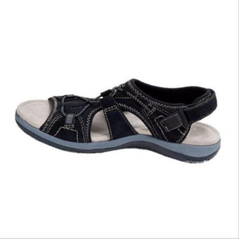 New slope heel sandals round head Velcro retro one-word large size beach solid color sandals women