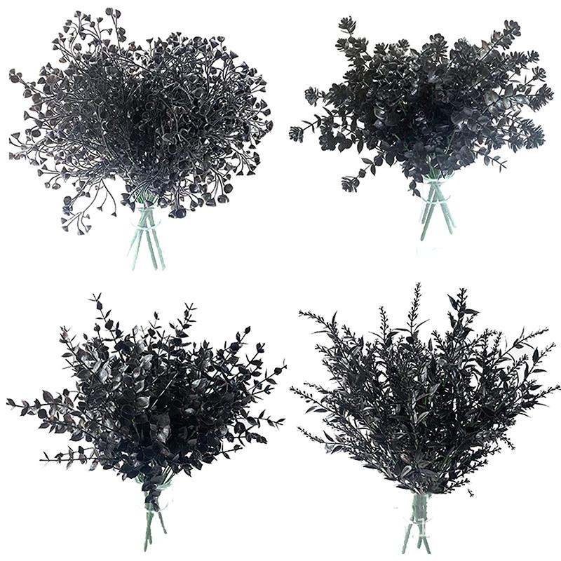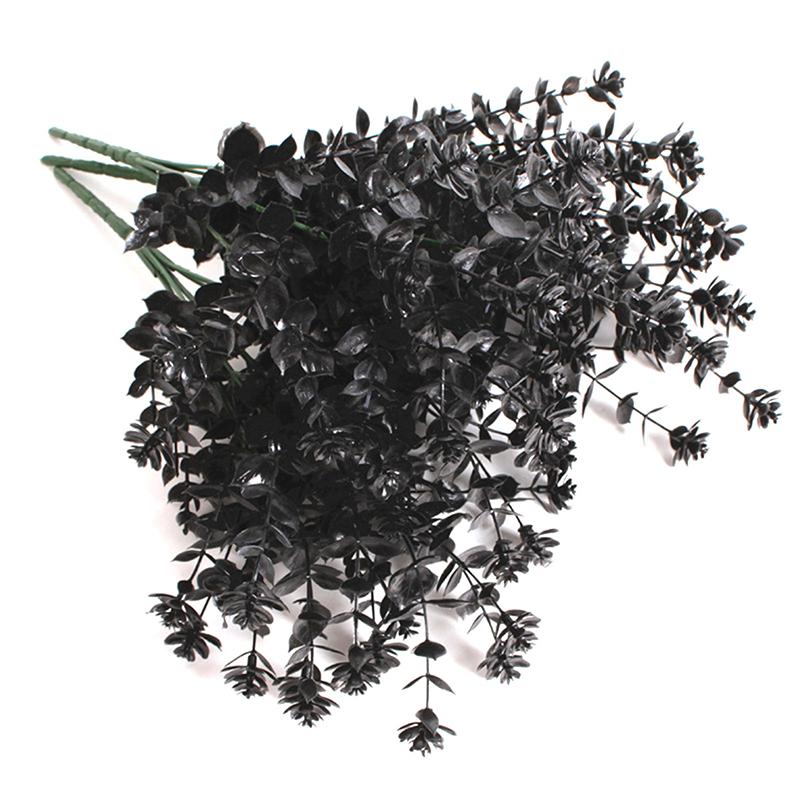 Хэллоуин Черное искусственное растение Виноградная лоза Эвкалипт Персидский лист папоротника Пластиковый искусственный цветок Трава Домашняя вечеринка Сад Декор Реквизит для фотографий