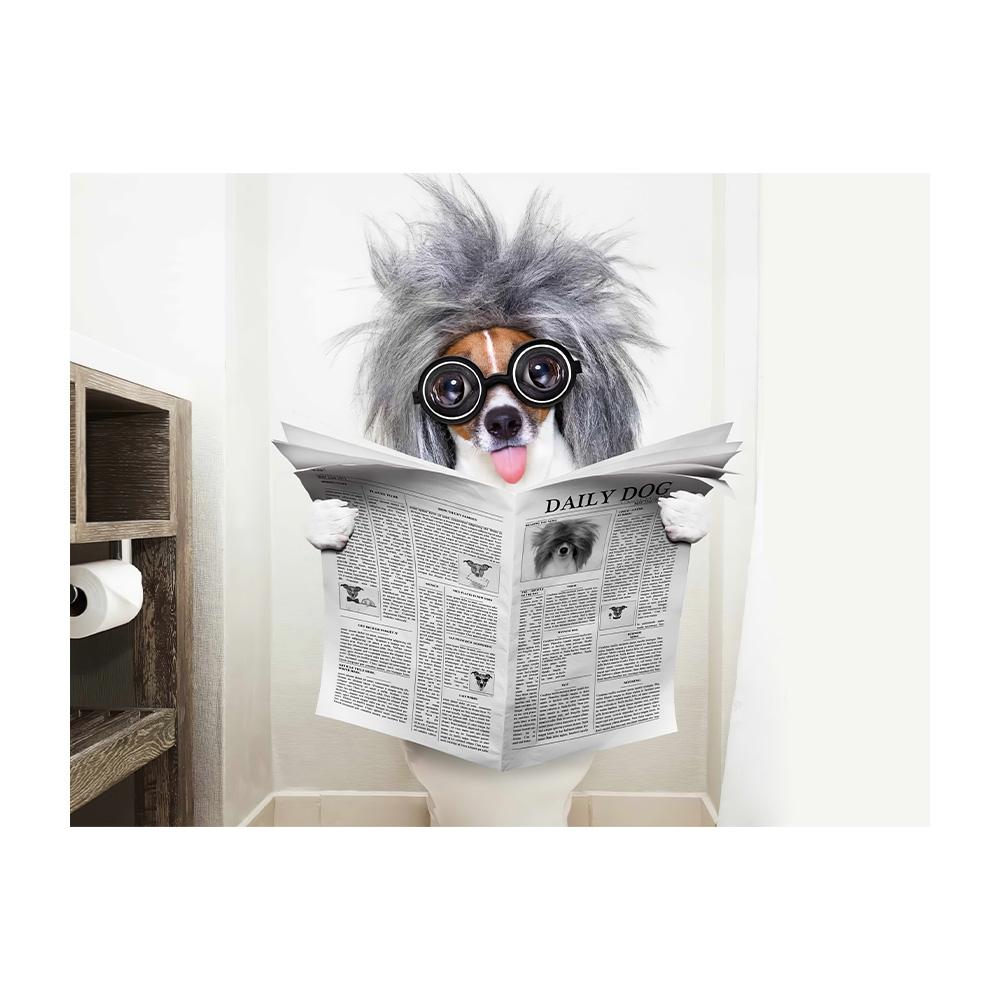 Собака читает газету Искусство для стены туалета Холст Принты Забавная картина с собакой Настенная картина Домашний декор для ванной комнаты Подарок для любителя собак