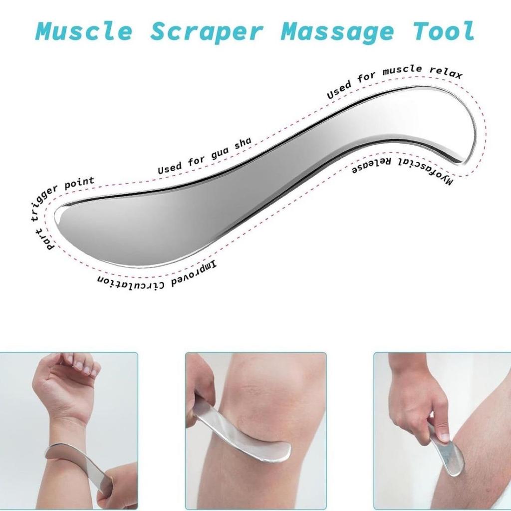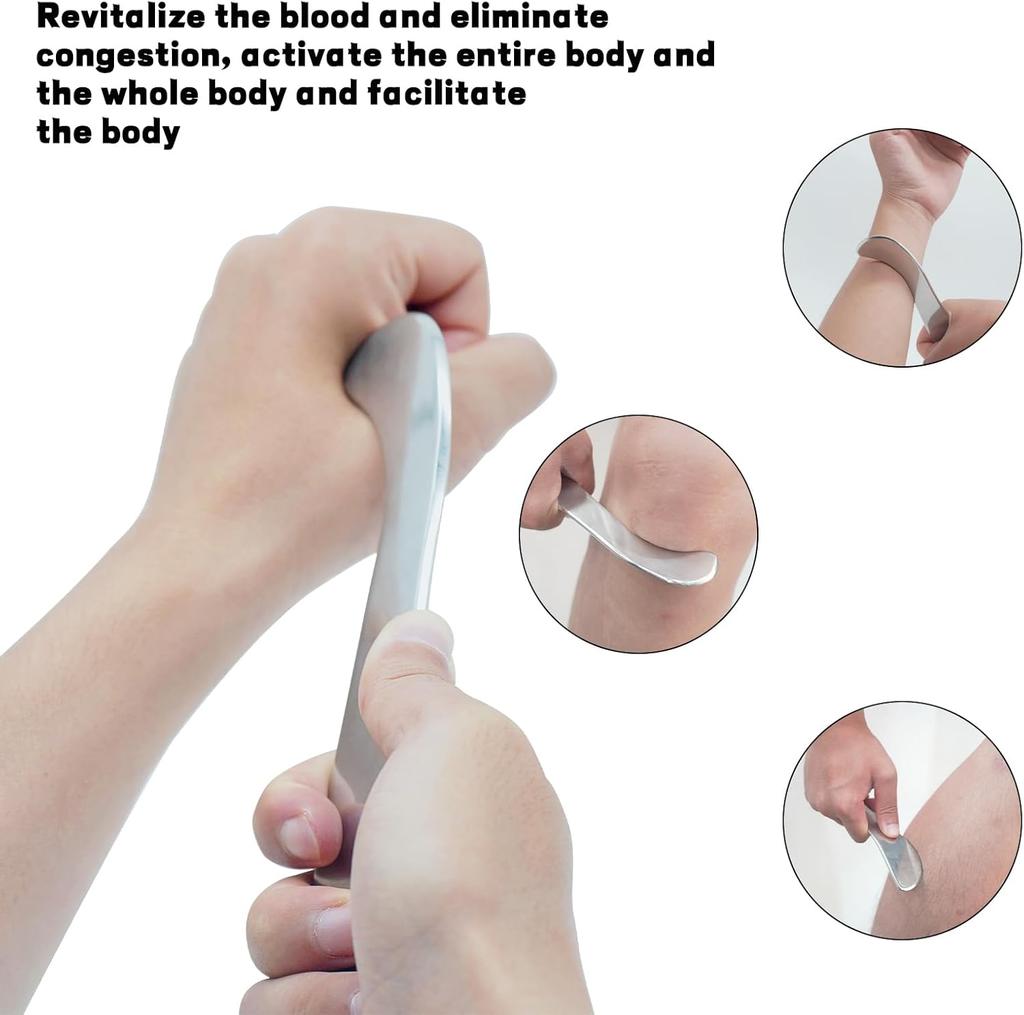 【Скребок для мышц из нержавеющей стали】: Облегчает мышечную боль, болезненность и напряжение, разрушает спайки мягких тканей и фасциальные ограничения, способствует кровообращению, разглаживает целлюлит.; подходит для лимфодренажного массажа, способствует лимфотоку по всему телу и ускоряет метаболизм. И улучшите эластичность и упругость кожи, оказывая давление на область, царапая мышцы и выполняя массаж гуа-ша.