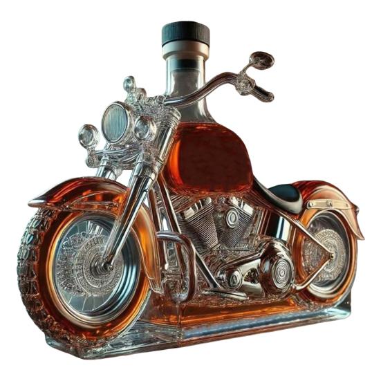 Дизайн мотоцикла ручной работы: Поднимите декор вашего дома на новый уровень с помощью стеклянного декантера ручной работы в форме мотоцикла, который органично сочетает в себе функциональность и художественность и станет ярким предметом для разговоров для ценителей виски.