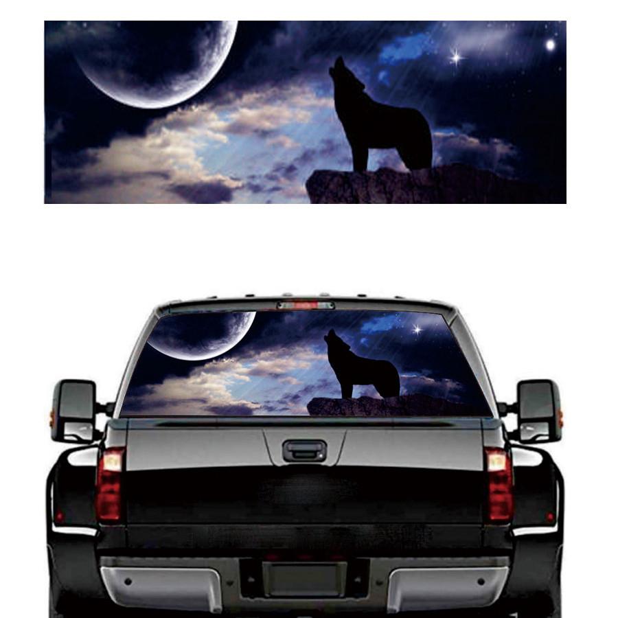 Универсальная 53×14" Автомобильная Звездное Небо и Волк Тонировка Заднего Стекла Графическая Наклейка Обертка Bac