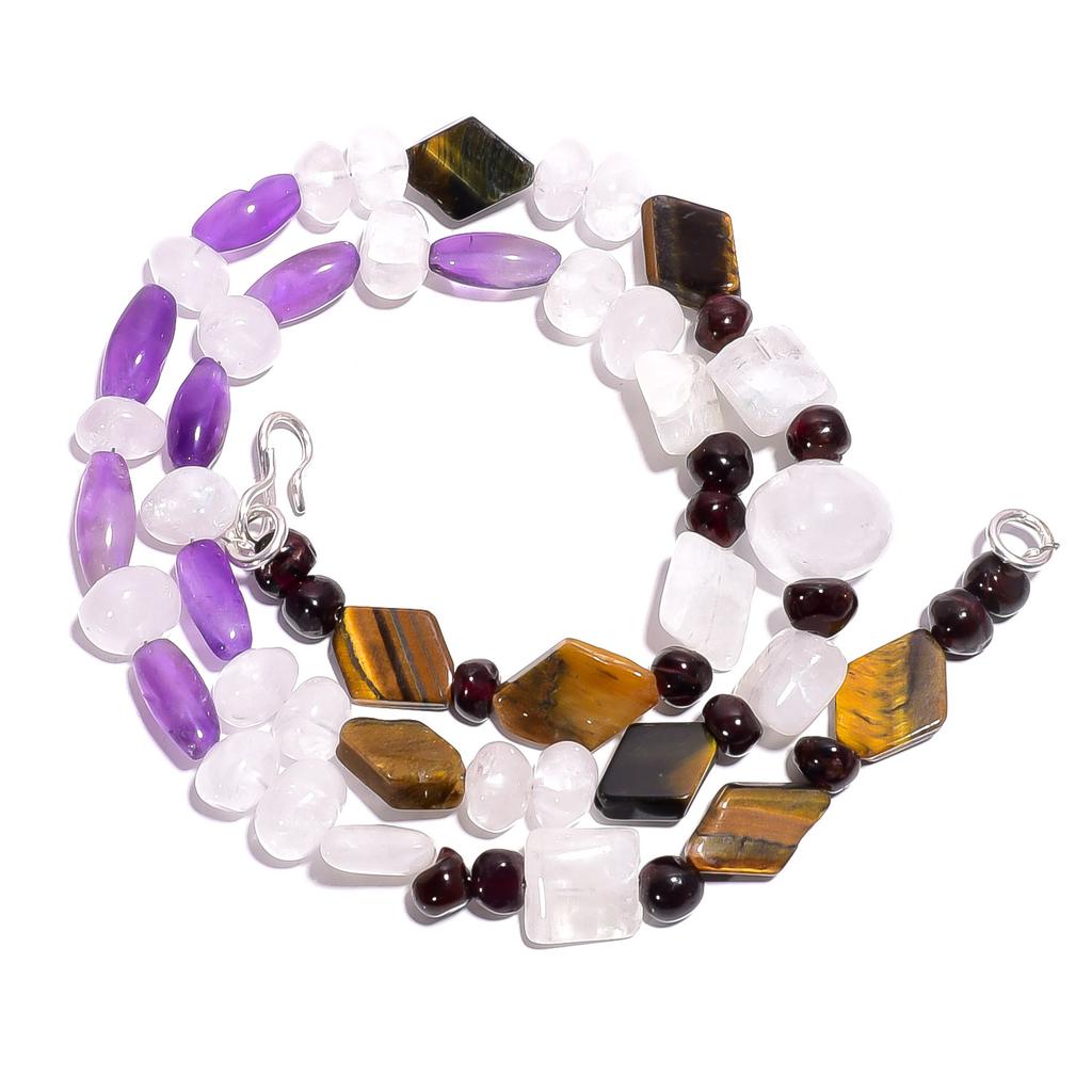 Натуральный камень Тигровый глаз Аметист Лунный камень Гладкие бусины Ожерелье 17" UB-4934 UB-4934