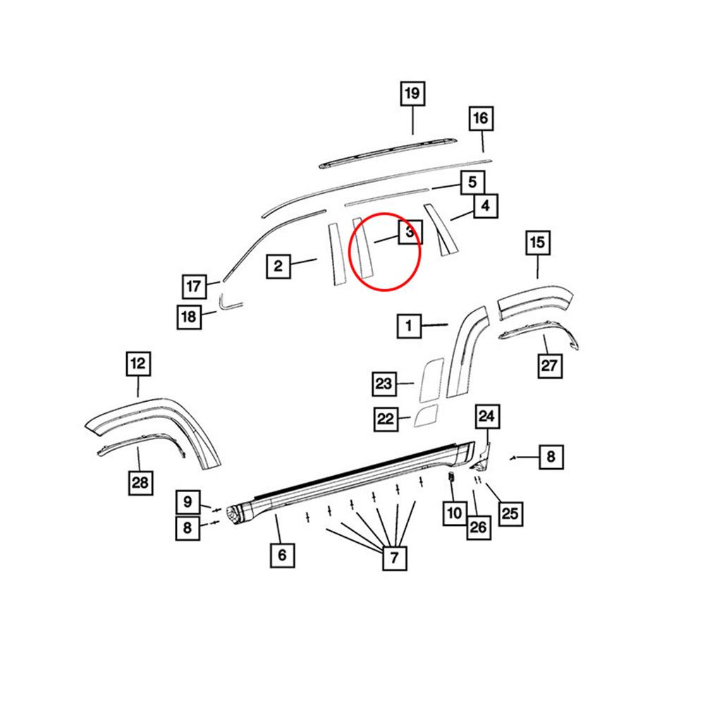 Аппликация B на накладку окна левой стойки задней двери для Jeep Grand Cherokee 11-2020