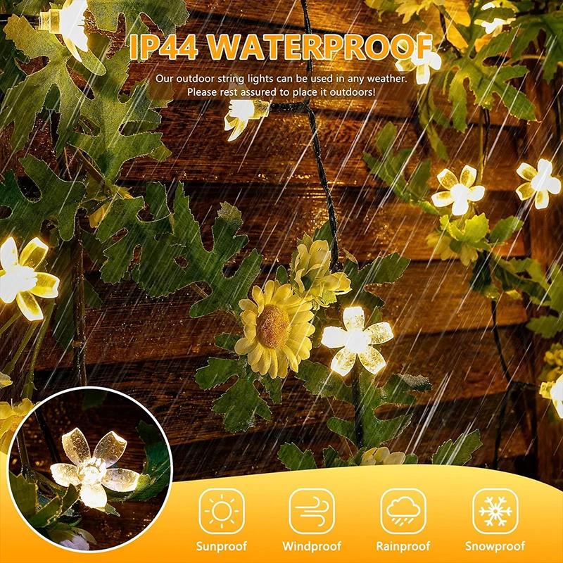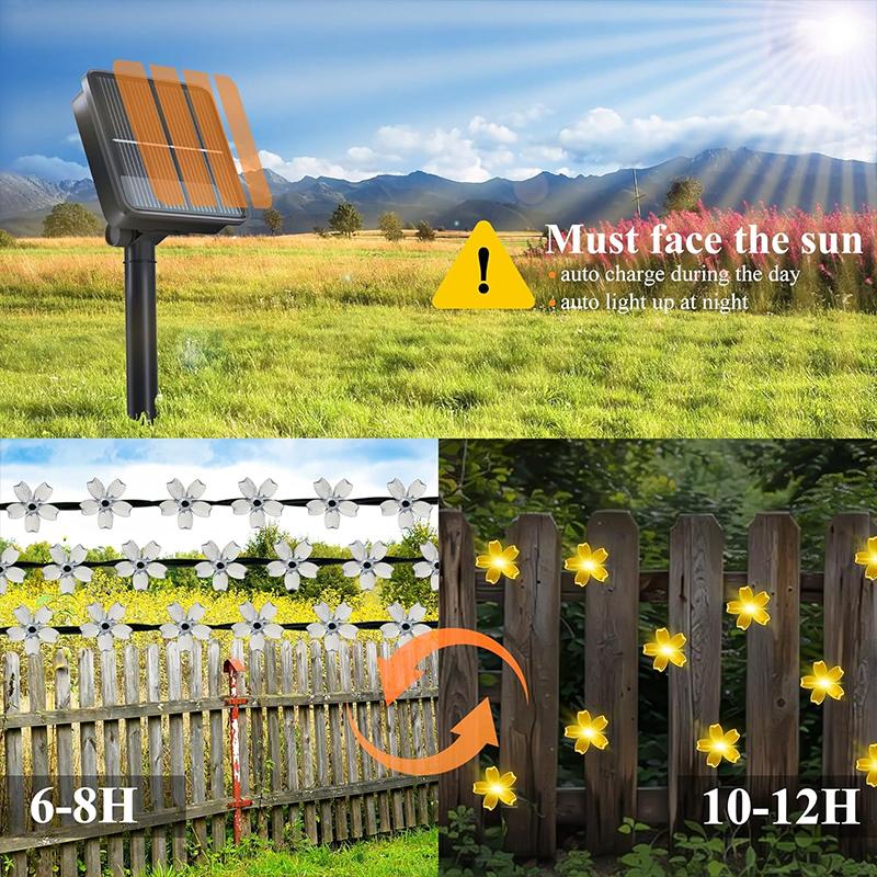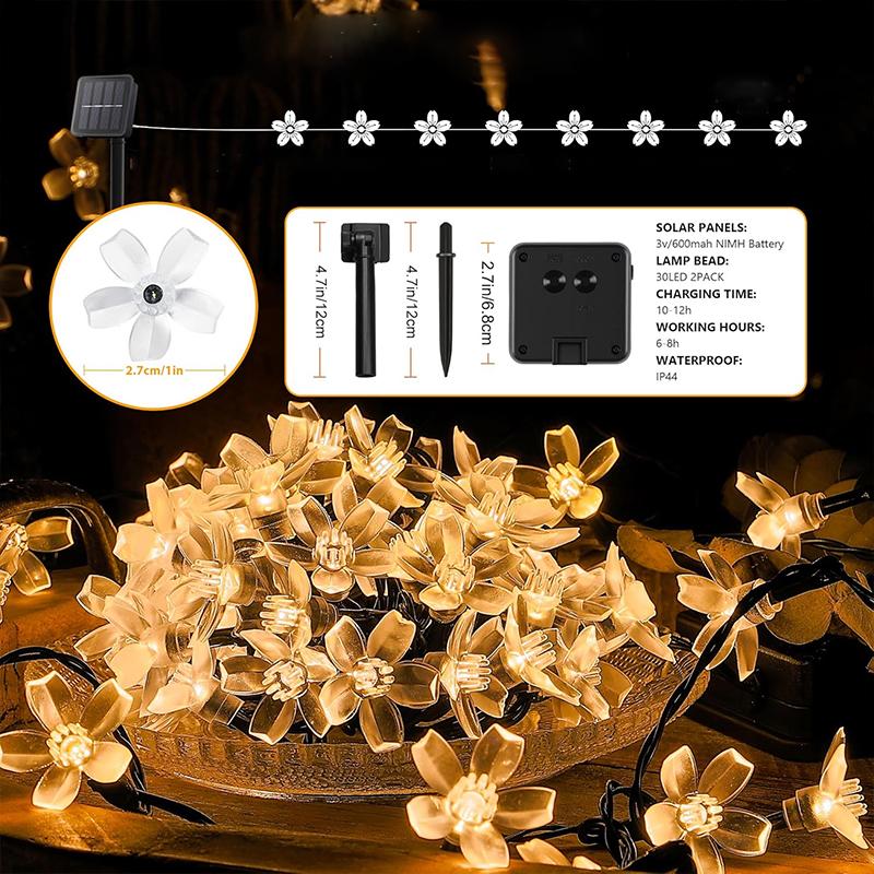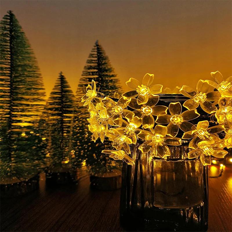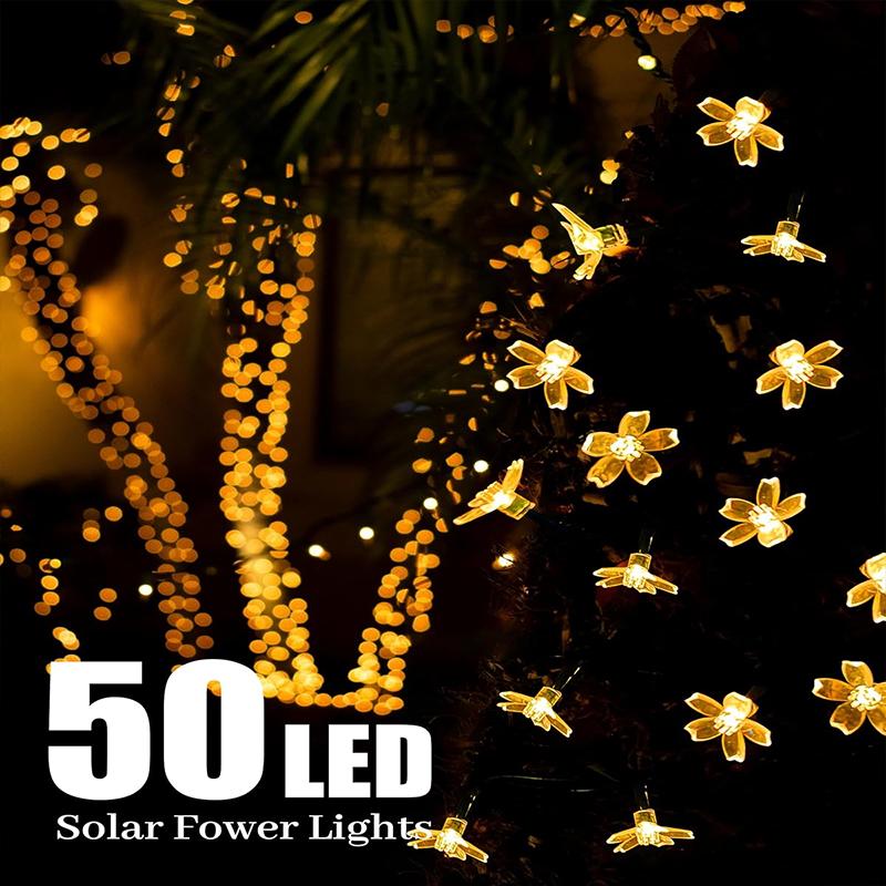 Теплый белый лепестковый свет, свет цветущей вишни, водонепроницаемая солнечная светодиодная гирлянда, садовое украшение, уличный свет, свадьба, рождественская вечеринка