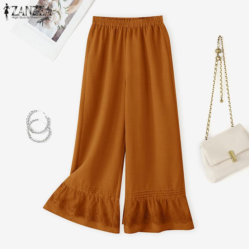 ZANZEA Женские повседневные брюки с эластичной талией, свободные, со вставками из кружева — купить товар онлайн с бесплатной доставкой по всему миру!