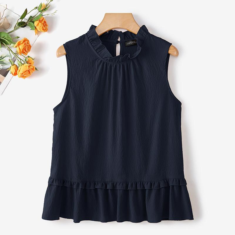 ZANZEA Женские летние повседневные майки без рукавов с круглым вырезом
