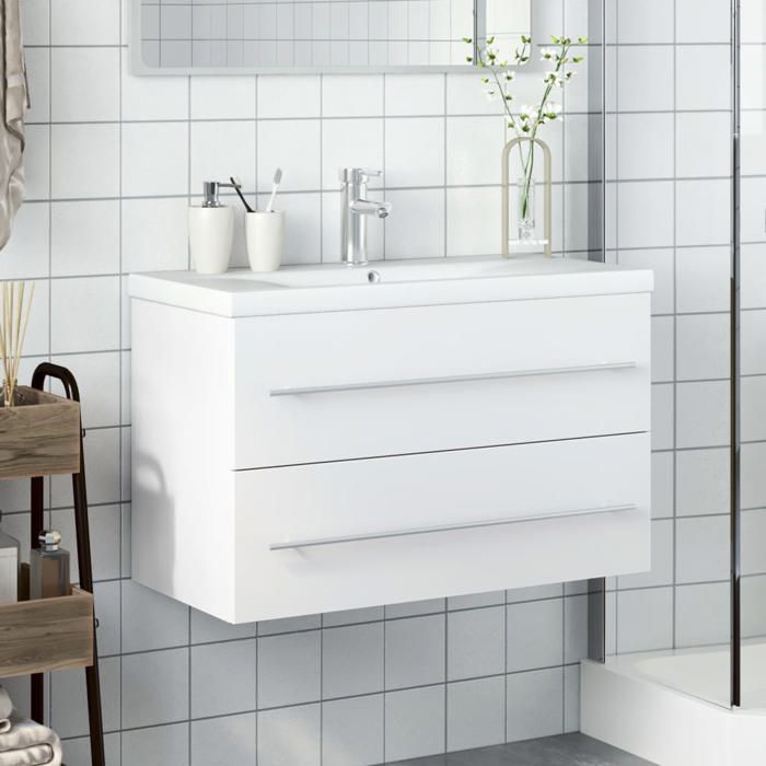 VidaXL Armoire Lavabo de Salle de Bain avec Bassin Intégré, Meuble sous Évier, Placard de Rangement, Organisateur de 3278776