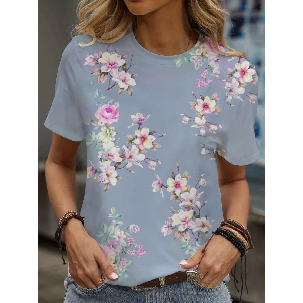 Разноцветная футболка с цветочным принтом, повседневный уличный стиль, высококлассная женская одежда, футболка с коротким рукавом на 2025 год.