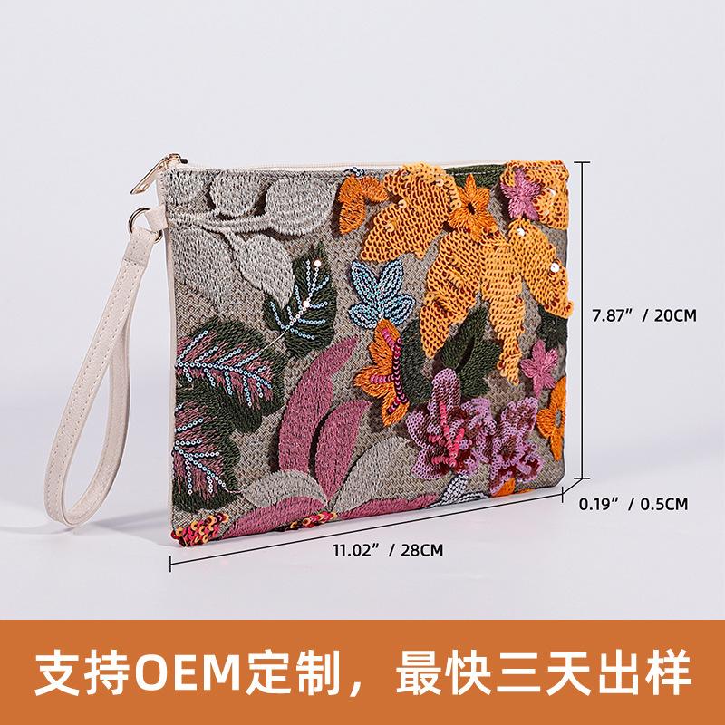 Высококлассная тканая вечерняя сумка с пайетками Новая вышитая сумка-клатч Летняя нишевая плетеная сумка из соломы Модная женская сумка-конверт