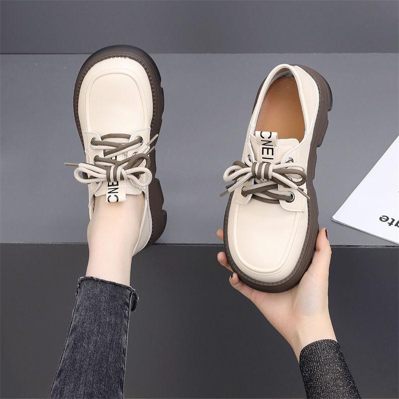 Женские весенне-осенние новые туфли из натуральной мягкой кожи на толстой подошве на шнуровке, универсальные, на мягкой подошве, удобные маленькие кожаные туфли