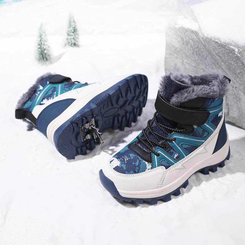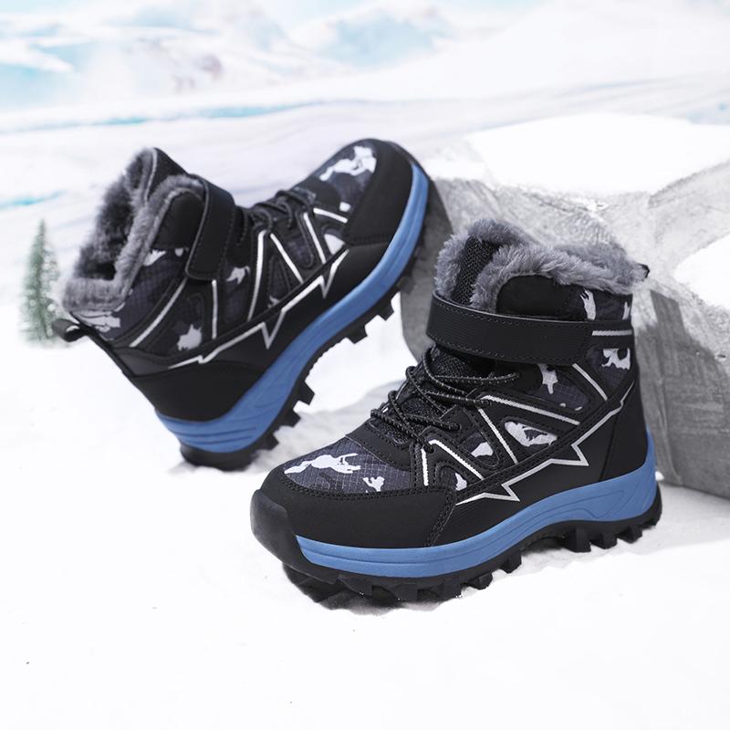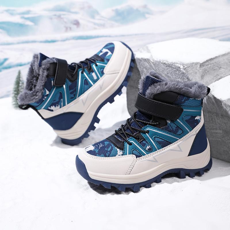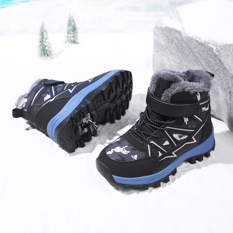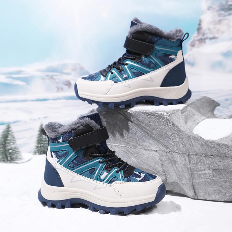 Детские теплые зимние сапоги. Детская зимняя хлопчатобумажная обувь. Нескользящие теплые плюшевые сапоги на открытом воздухе. Теплая меховая обувь с высоким берцем. Водонепроницаемые теплые кроссовки.