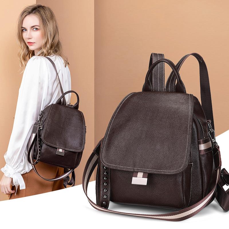 Женский рюкзак Новый корейский стиль Легкий в носке Женская сумка Коровья кожа Защита от краж Рюкзак с клапаном Мягкая кожа Дорожная сумка