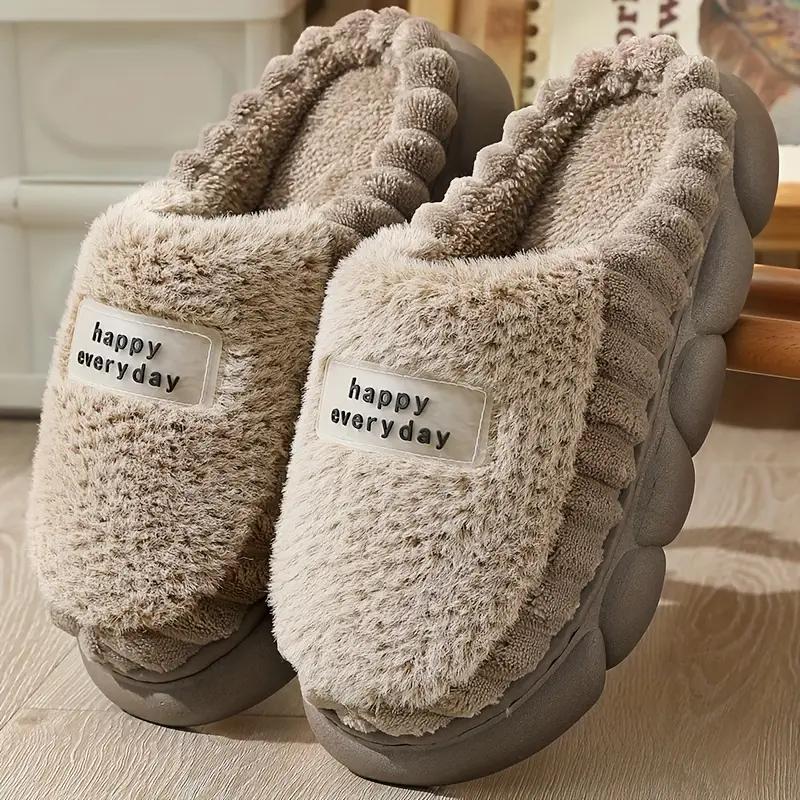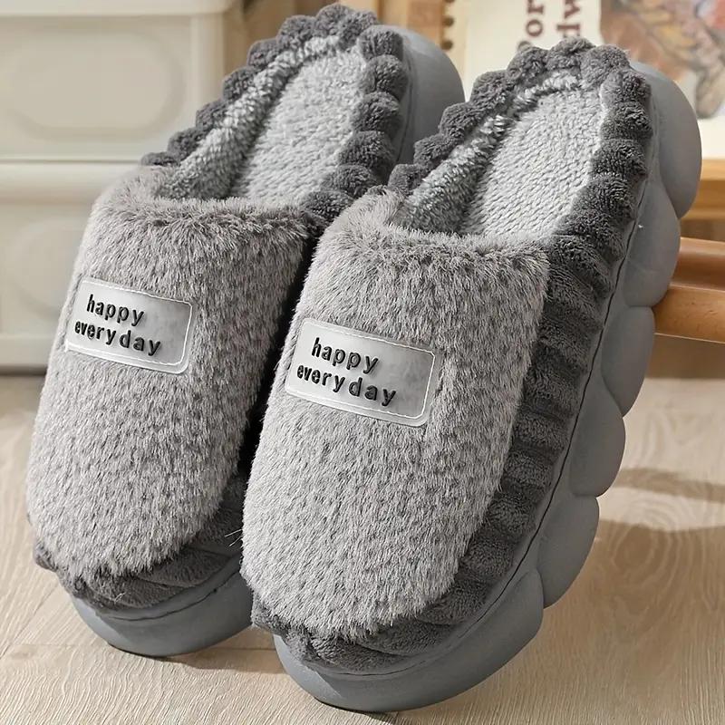 Женские удобные тапочки с шерстяной подкладкой, нескользящая резиновая подошва, удобная и теплая хлопковая обувь, однотонная домашняя обувь
